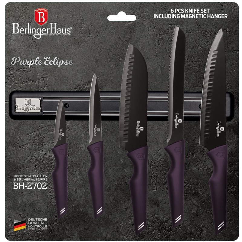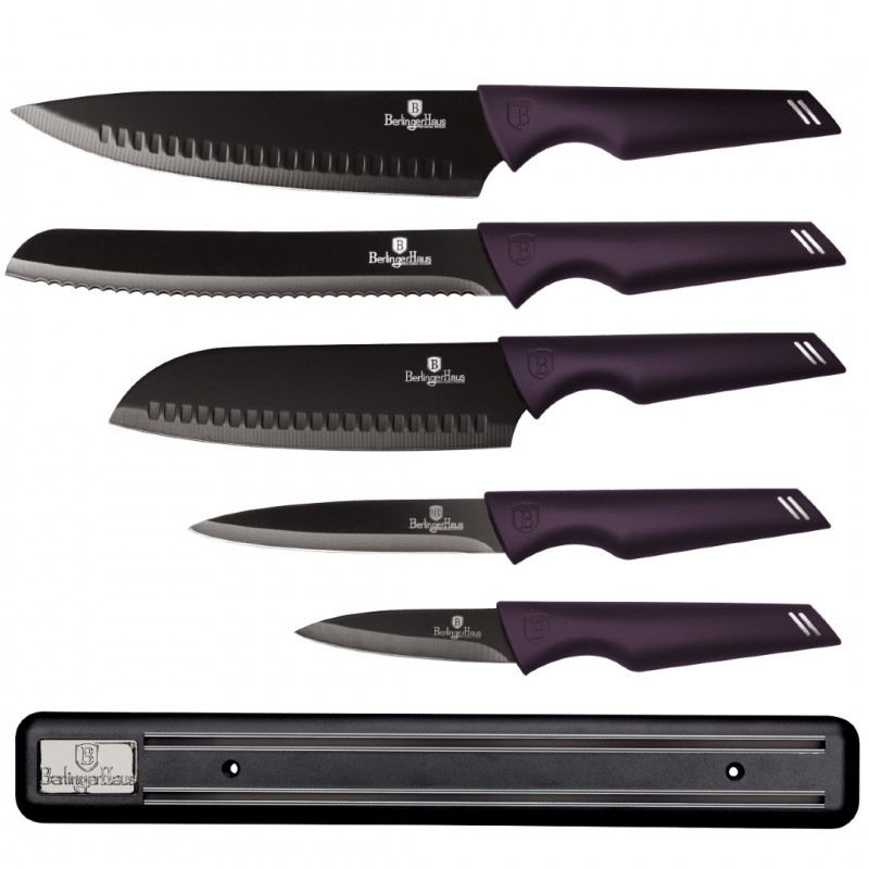 Berlinger Haus σετ Μαχαίρια από Ανοξείδωτο Ατσάλι 6τμχ με Επιτοίχια Μαγνητική Βάση, Purple Eclipse Collection bh-2702