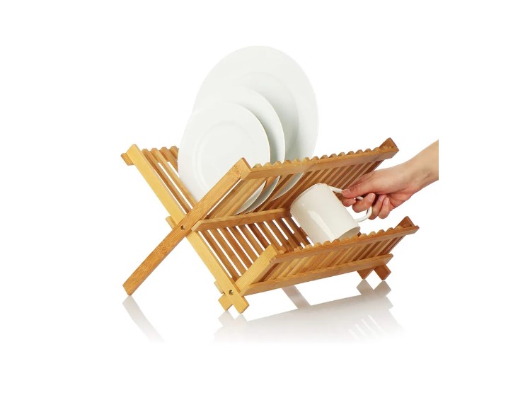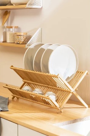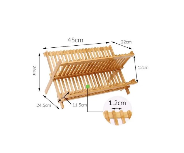 Αυτή η πιατοθήκη, από την εταιρεία BAMBOU & CO, διαθέτει 2 επίπεδα στα οποία μπορείτε να στεγνώσετε τα ποτήρια, τα πιάτα, τα μπολ και τα μαχαιροπίρουνά σας. Με τη μεγάλη του χωρητικότητα, είναι ιδανικό για μεγάλες οικογένειες ή άτομα που έχουν πολλά πιάτα να πλύνουν. Είναι επίσης πτυσσόμενη, καθιστώντας εύκολη την αποθήκευση όταν δεν χρησιμοποιείται.Τέλος, ο κομψός σχεδιασμός του από μπαμπού θα φέρει μια πινελιά φυσικότητας στην κουζίνα σας.