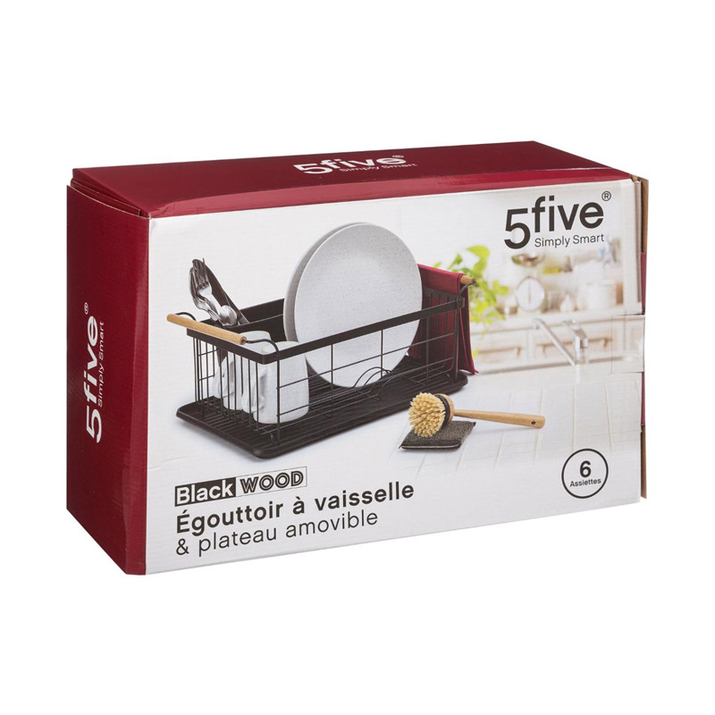 Η πιατοθήκη, από την εταιρία 5Five Simply Smart, διαθέτει μεταλλική κατασκευή. Χωράει 10 πιάτα, έχει 1 θήκη για τα μαχαιροπήρουνα, άνετο χώρο για ποτήρια νερού και ξύλινες λαβές. Επιπρόσθετα, περιλαμβάνει πλαστικό και αφαιρούμενο δίσκο αποστράγγισης.