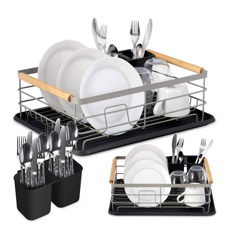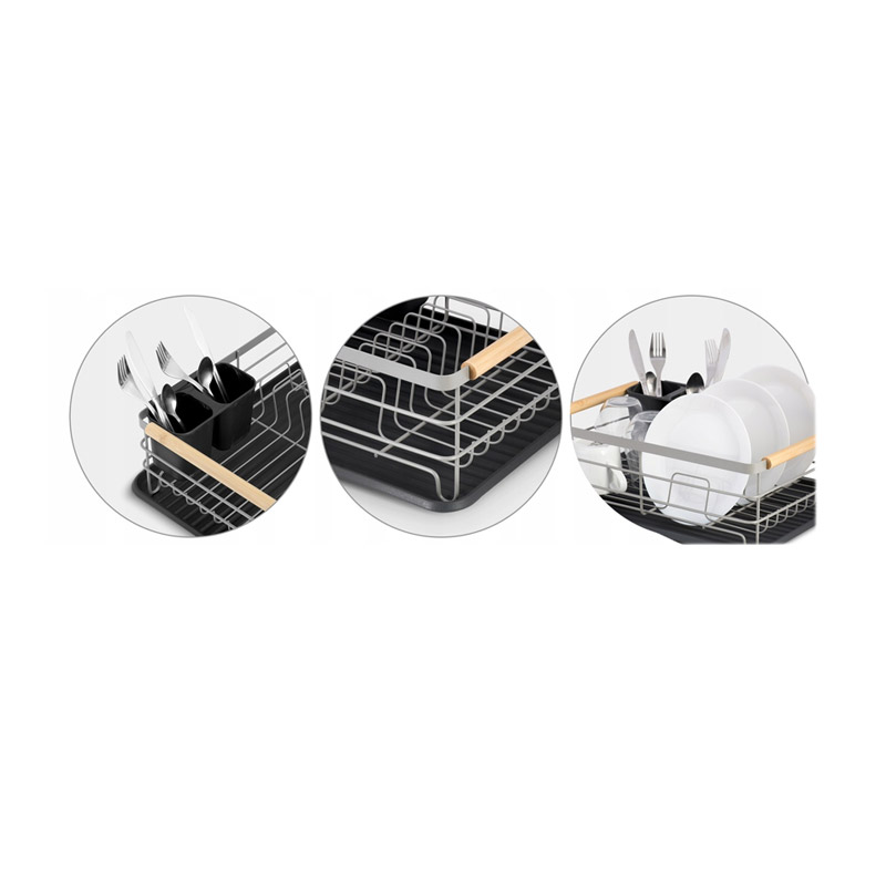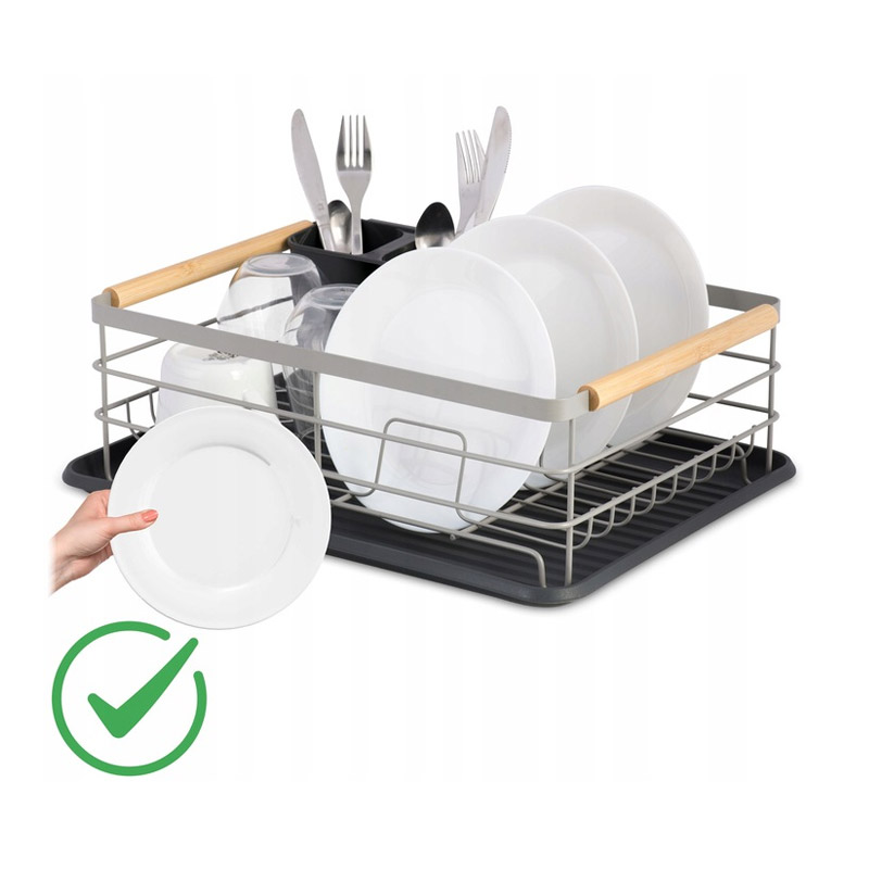 Η πιατοθήκη στεγνωτήριο, από την εταιρία Massido, διαθέτει μεταλλική κατασκευή με βαφή πούδρας, ανθεκτική στη σκουριά και στις γρατζουνιές. Οι λαβές του είναι από υψηλής ποιότητας ξύλο, γι' αυτό συνιστάται να τα λαδώνετε με λάδι ξύλου μία φορά κάθε 4 μήνες. Περιλαμβάνει θήκη για μαχαιροπίρουνα και αφαιρούμενο δίσκο αποστράγγισης.