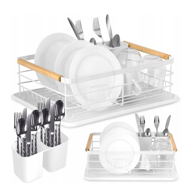 Η πιατοθήκη στεγνωτήριο, από την εταιρία Massido, διαθέτει μεταλλική κατασκευή με βαφή πούδρας, ανθεκτική στη σκουριά και στις γρατζουνιές. Οι λαβές του είναι από υψηλής ποιότητας ξύλο, γι' αυτό συνιστάται να τα λαδώνετε με λάδι ξύλου μία φορά κάθε 4 μήνες. Περιλαμβάνει θήκη για μαχαιροπίρουνα και αφαιρούμενο δίσκο αποστράγγισης.