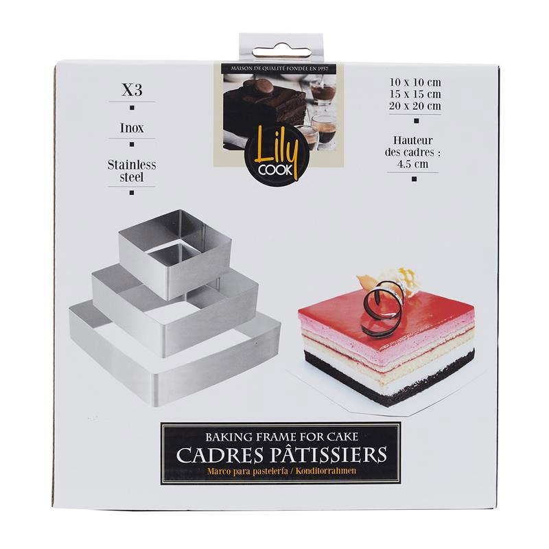 Σετ Ορθογώνια Ανοξείδωτα Τσέρκια - Κουπ Πατ Ζαχαροπλαστικής 3 τμχ Lily Cook KP5749