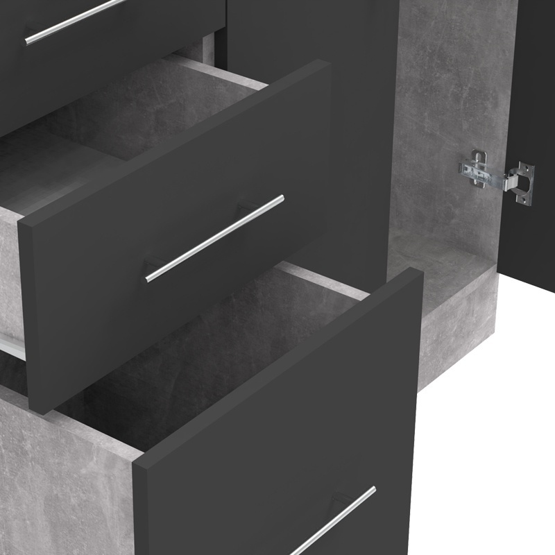 - Κάτω: Διπλό ντουλάπι και τρια άνετα συρτάρια