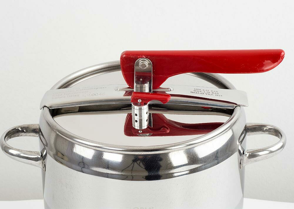 Ο χοντρός πάτος τριών στρώσεων προσφέρει ταχεία και ομοιόμορφη κατανομή θερμότητας. Έτσι, εξοικονομείτε εκτός από χρόνο και χρήμα. Το καπάκι εξοπλισμένο με σύστημα κλειδώματος ασφαλείας κλείνει ερμητικά εξασφαλίζοντας ότι όλη η πίεση παραμένει εγκλωβισμένη εντός του σκεύους.