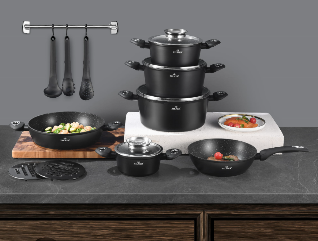 Σετ Μαγειρικά Σκεύη - Κατσαρόλες 15 τεμάχια Μαύρο ZL-8570 ZILNER