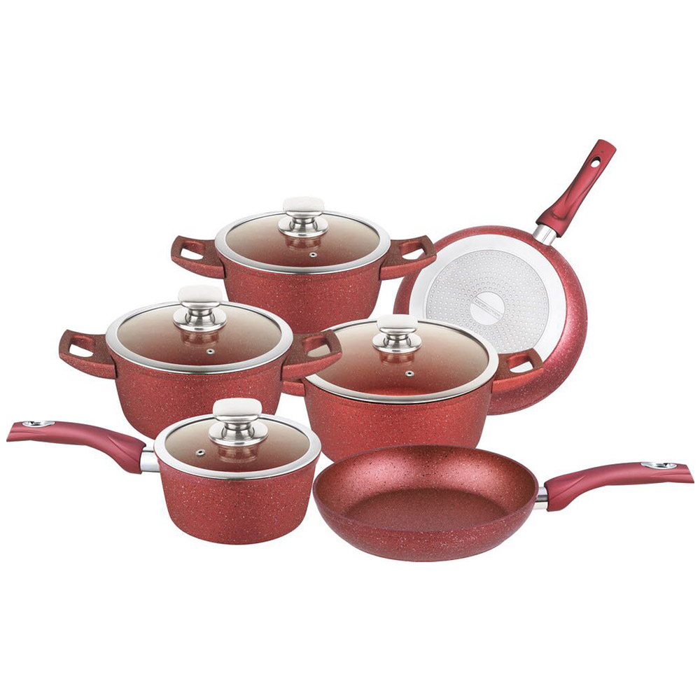 Σετ αντικολλητικά μαγειρικά σκεύη με επίστρωση μαρμάρου, 14 τεμαχίων, Royalty Line RL-FC14-BURGUNDY