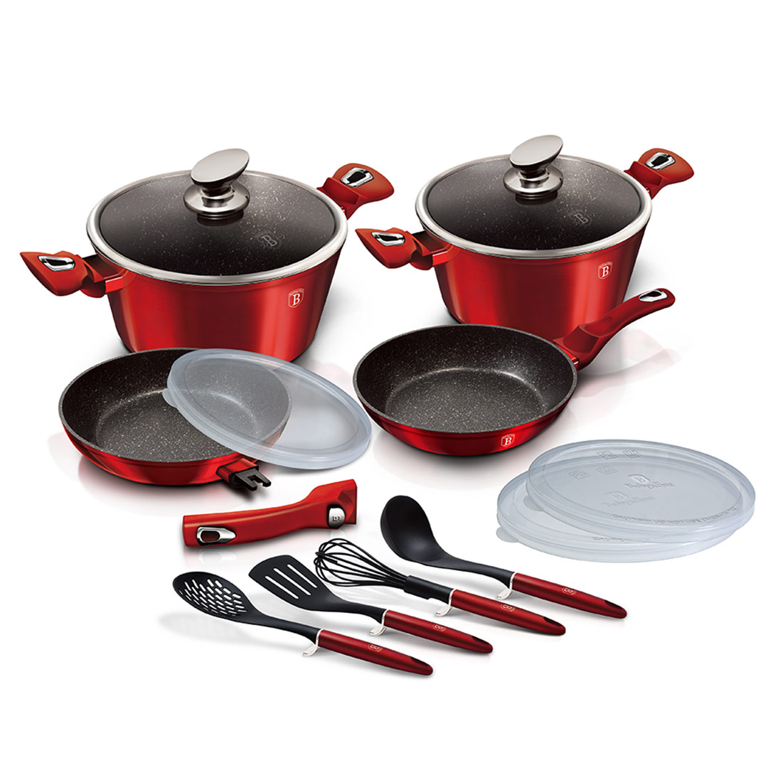 Σετ μαγειρικά σκεύη και εργαλεία κουζίνας 13 τμχ από σφυρήλατο αλουμίνιο με τριπλή αντικολλητική μαρμάρινη επίστρωση Metallic Line Burgundy Edition, Berlinger Haus BH-7057