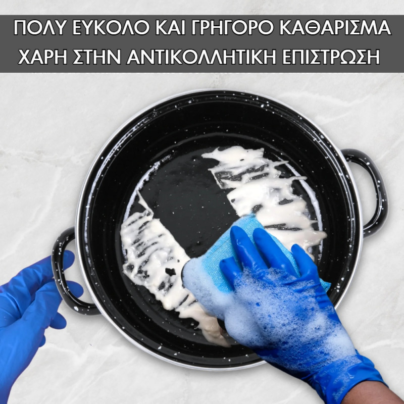 Η αντικολλητική επίστρωση ενδέχεται να υποστεί ζημιές από μεταλλικά εργαλεία κουζίνας. Για μεγαλύτερη αντοχή στο χρόνο, προτιμήστε εργαλεία κουζίνας (κουτάλες, σπάτουλες, αναδευτήρες) από ξύλο ή σιλικόνη.