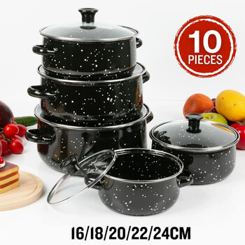 Σετ Αντικολλητικά Μαγειρικά Σκεύη 10τμχ από Ανοξείδωτο Ατσάλι με Εμαγιέ Επίστρωση Herzberg HG-04128