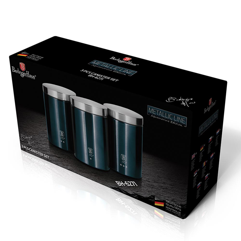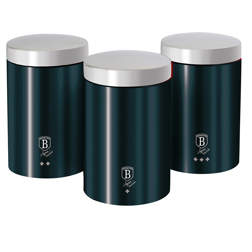 Σετ Δοχεία Αποθήκευσης Τροφίμων από Ανοξείδωτο Ατσάλι 3 τμχ Aquamarine Edition Berlinger Haus BH-6271