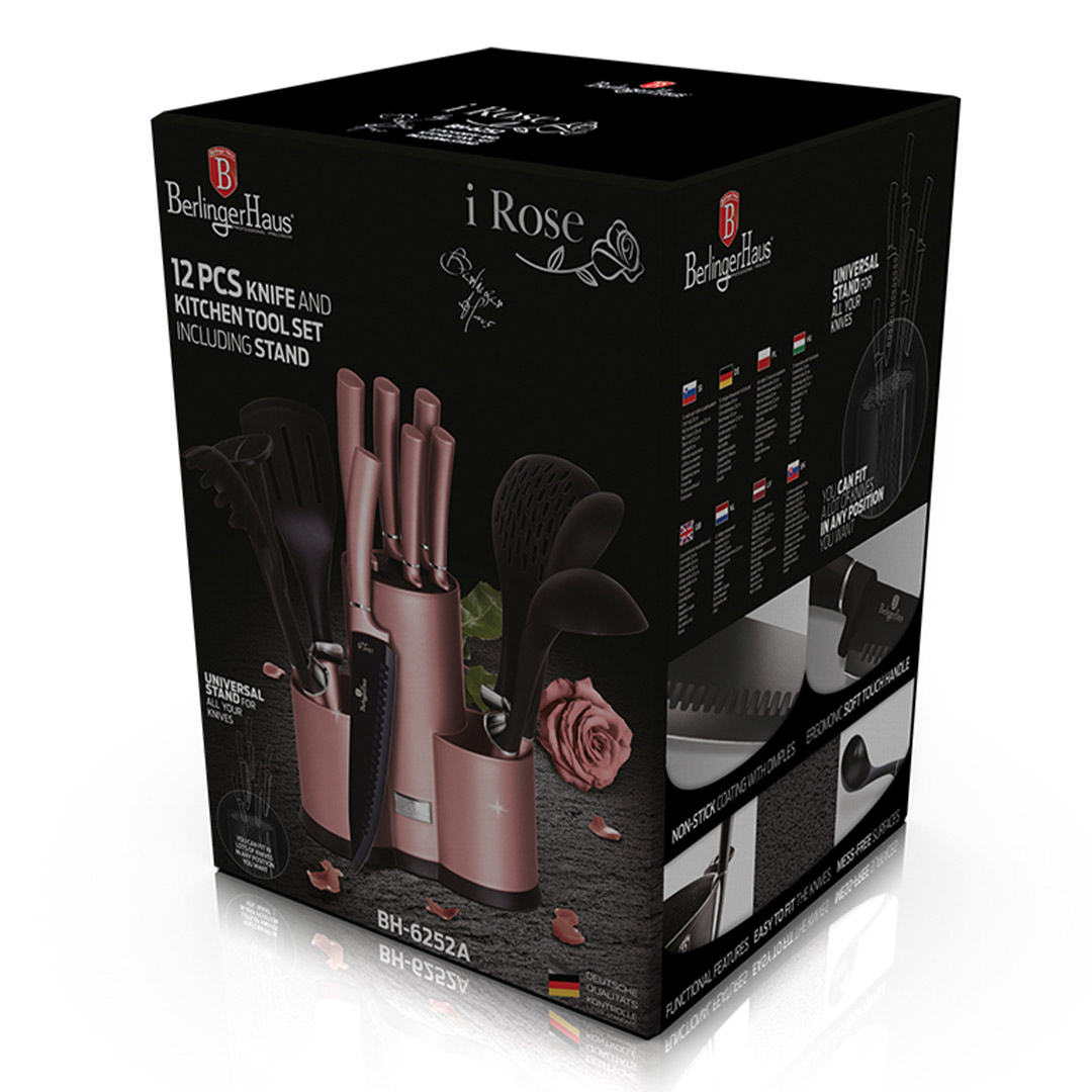 Berlinger Haus σετ Μαχαίρια και Εργαλεία Κουζίνας 12 Τμχ. με Βάση Στήριξης i-Rose Collection bh-6252na