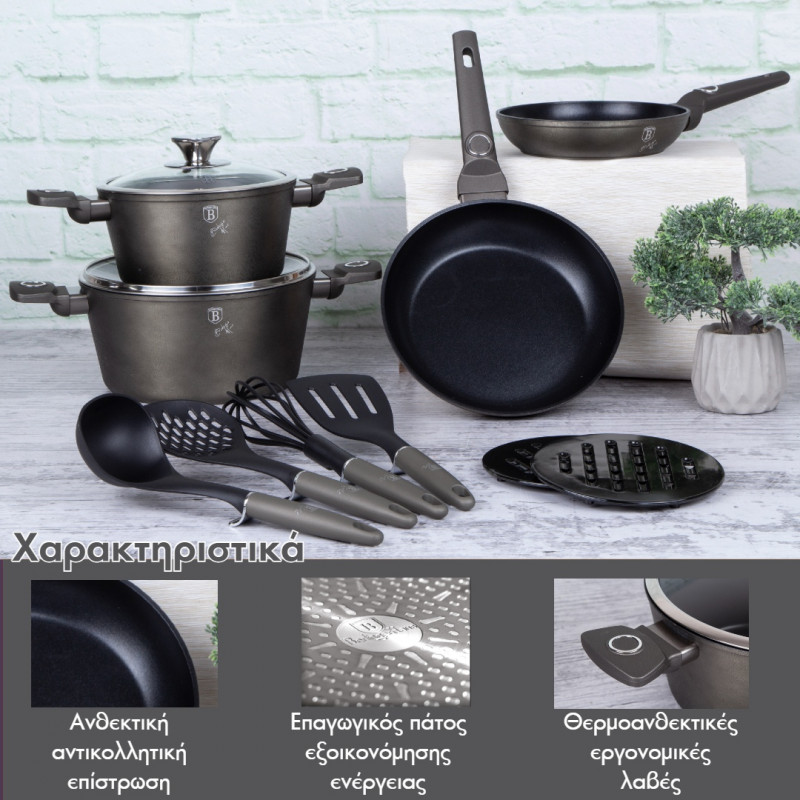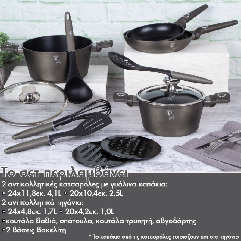 Σετ Μαγειρικά Σκεύη και Εργαλεία Κουζίνας 10 τμχ με Τριπλή Επίστρωση Titan, Crystal Collection Berlinger Haus bh-7166