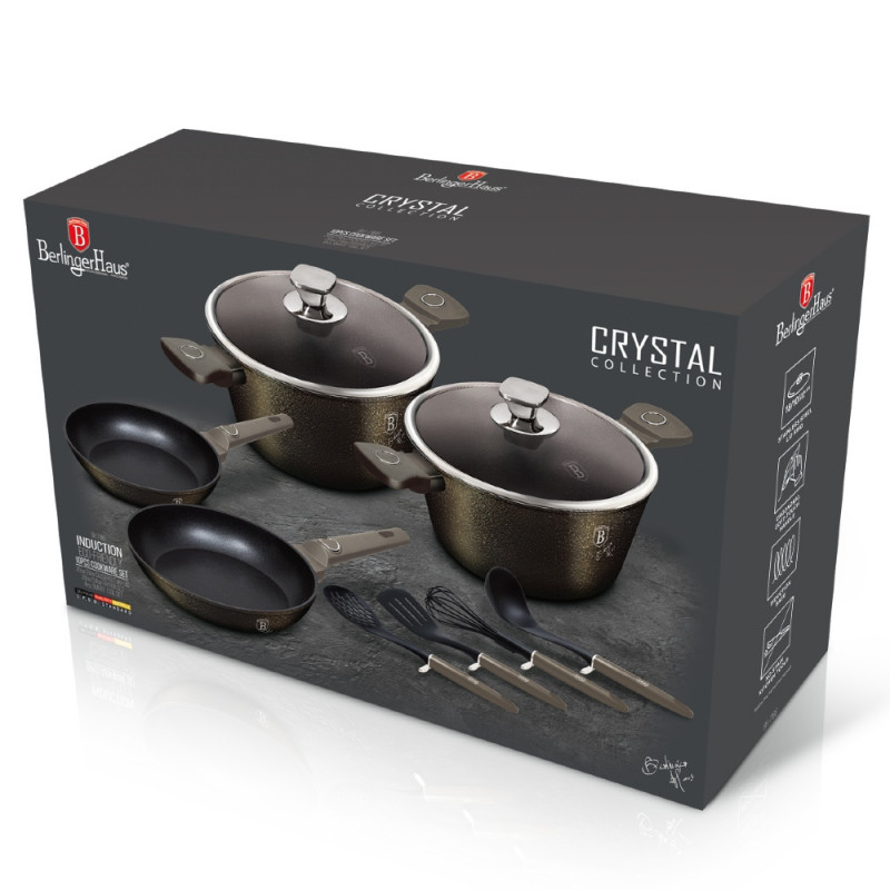 Σετ Μαγειρικά Σκεύη και Εργαλεία Κουζίνας 10 τμχ με Τριπλή Επίστρωση Titan, Crystal Collection Berlinger Haus BH-7166