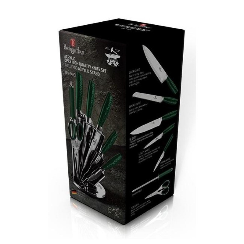 Σετ 8 μαχαίρια από Ανοξείδωτο Ατσάλι με Περιστρεφόμενη Βάση Στήριξης 360°, Emerald Edition Berlinger Haus BH-2463