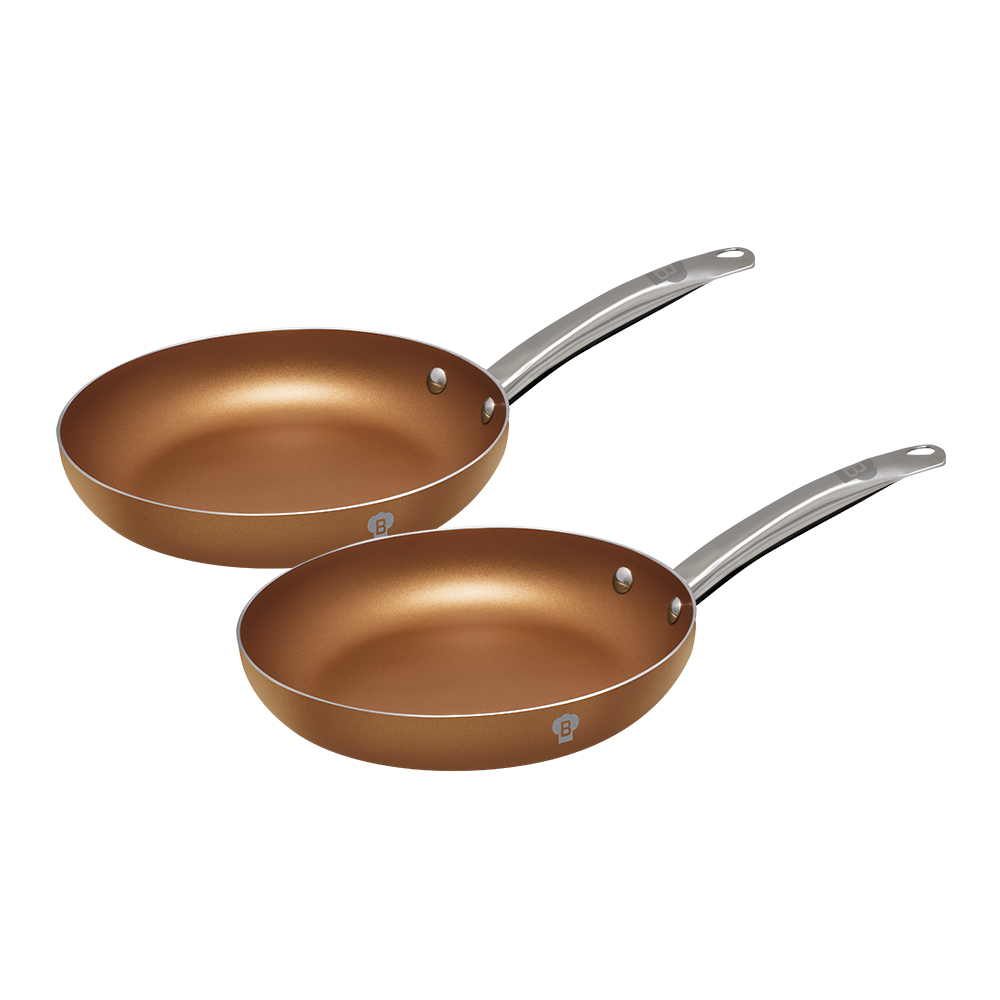 Επαγγελματικά τηγάνια σε εντυπωσιακό copper χρώμα με επαγωγικό πάτο και λαβές από ανοξείδωτο ατσάλι.
