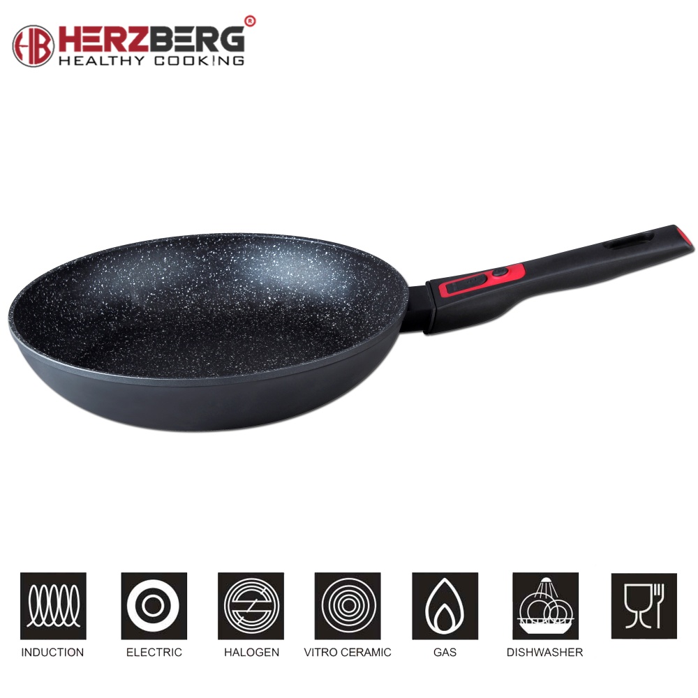 Herzberg Τηγάνι με Επίστρωση Μαρμάρου και Αφαιρούμενη Λαβή Ø22cm hg-7022fp