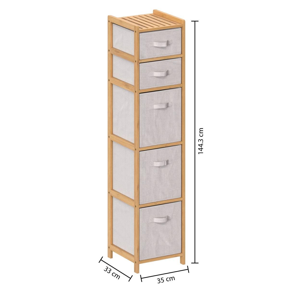 5FIVE Simply smart Συρταριέρα με 5 Υφασμάτινα Κουτιά και Ράφι, 35x33x144.3 εκ. 174902