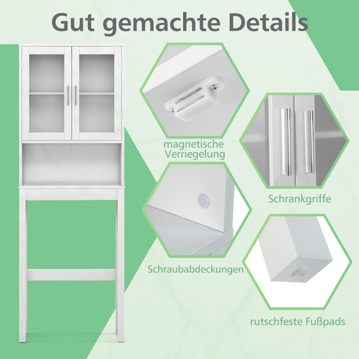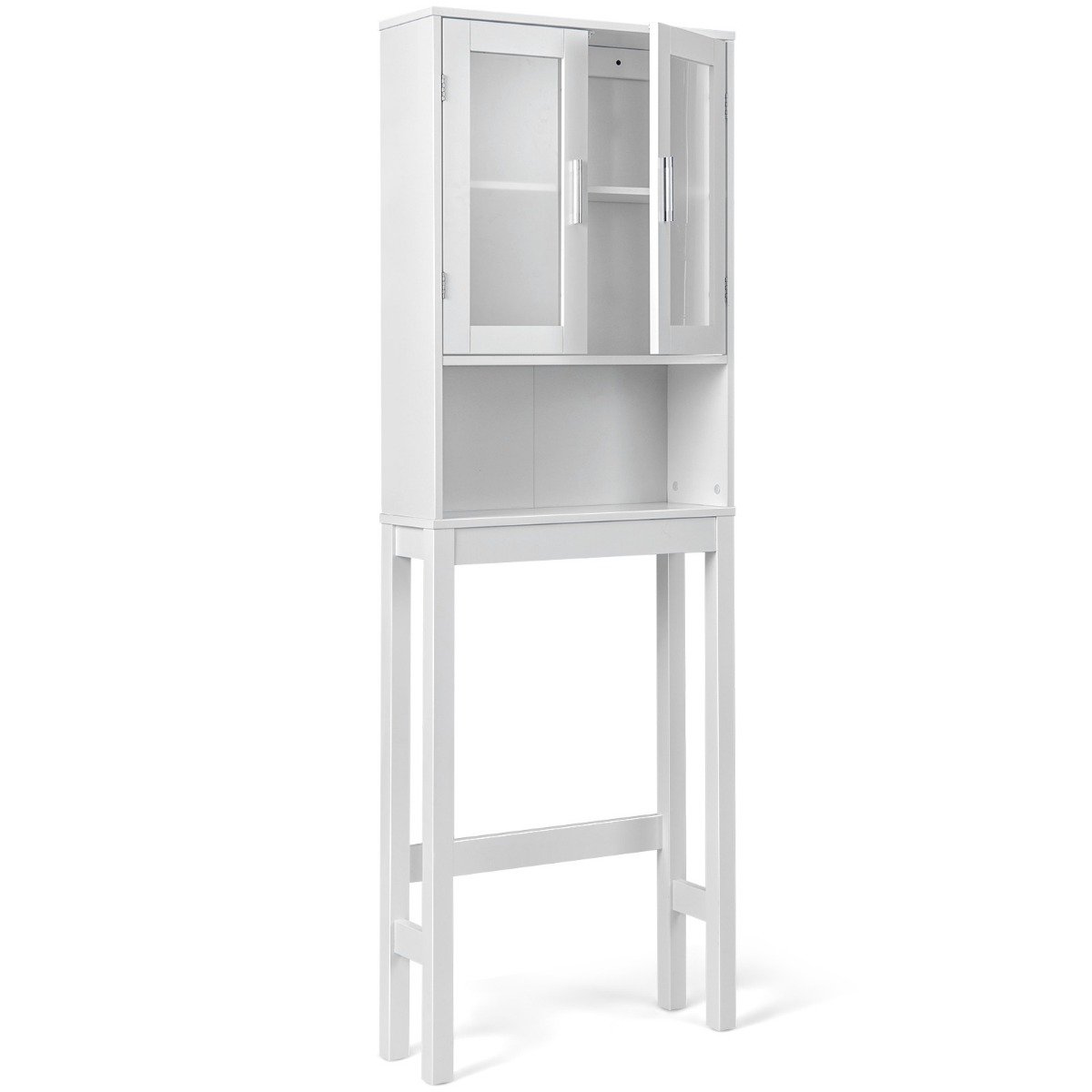 Costway Ελεύθερη ντουλάπα μπάνιου ράφι τουαλέτας πάνω από την τουαλέτα 58 x 19 x 170 cm Λευκό BA7861WH