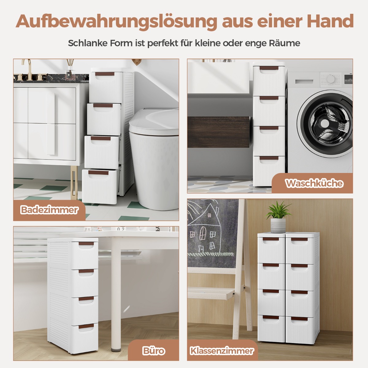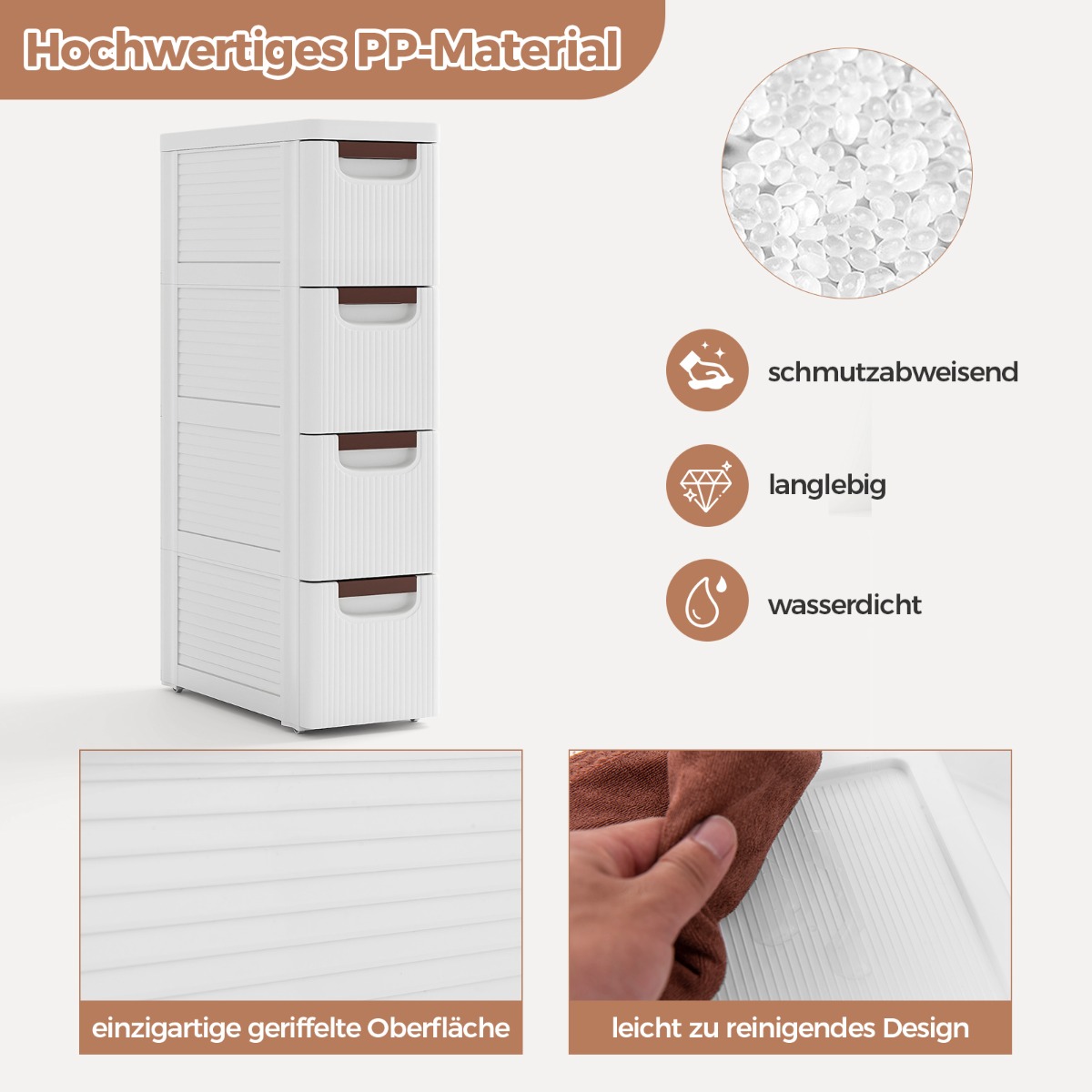 Costway Κινητή Μονάδα Αποθήκευσης με 4 Συρτάρια από Υψηλής Ποιότητας PP για Στενούς Χώρους JV11494WH