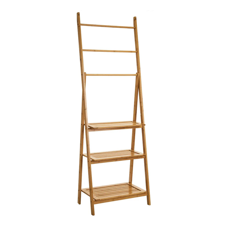 Ξύλινη Ραφιέρα Μπάνιου από Μπαμπού με 3 Ράφια και 3 Ράγες 53 x 31 x 153 cm Bakaji 02839924