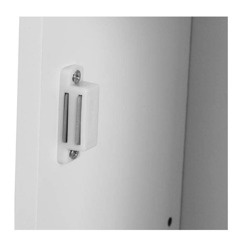 Το ντουλάπι μπάνιου, από την εταιρία Bakaji, είναι κατασκευασμένο εξ ολοκλήρου από ξύλο MDF σε κομψό λευκό χρώμα. Στο κάτω μέρος διαθέτει πόρτα με μαγνητικό κλείσιμο. Στο εσωτερικό του έχει 2 ράφια για πετσέτες, προϊόντα ομορφιάς, αξεσουάρ και προϊόντα καθαρισμού. Στο πάνω μέρος, έχει μια πρακτική θήκη για το χαρτί τουαλέτας. Ο συμπαγής, κατακόρυφος σχεδιασμός του, απαιτεί ελάχιστο χώρο ώστε να μπορεί να τοποθετηθεί ακόμη και στους πιο μικρούς χώρους.