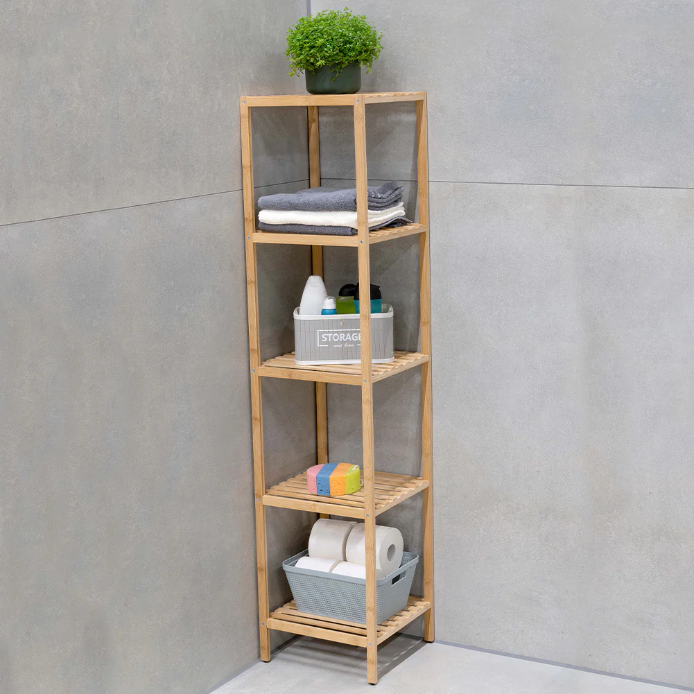 Στήλη-Ραφιέρα Μπάνιου από Μπαμπού με 5 Ράφια – 32 x 33 x 141 cm Φυσικό Ξύλο 02838914 Alpina