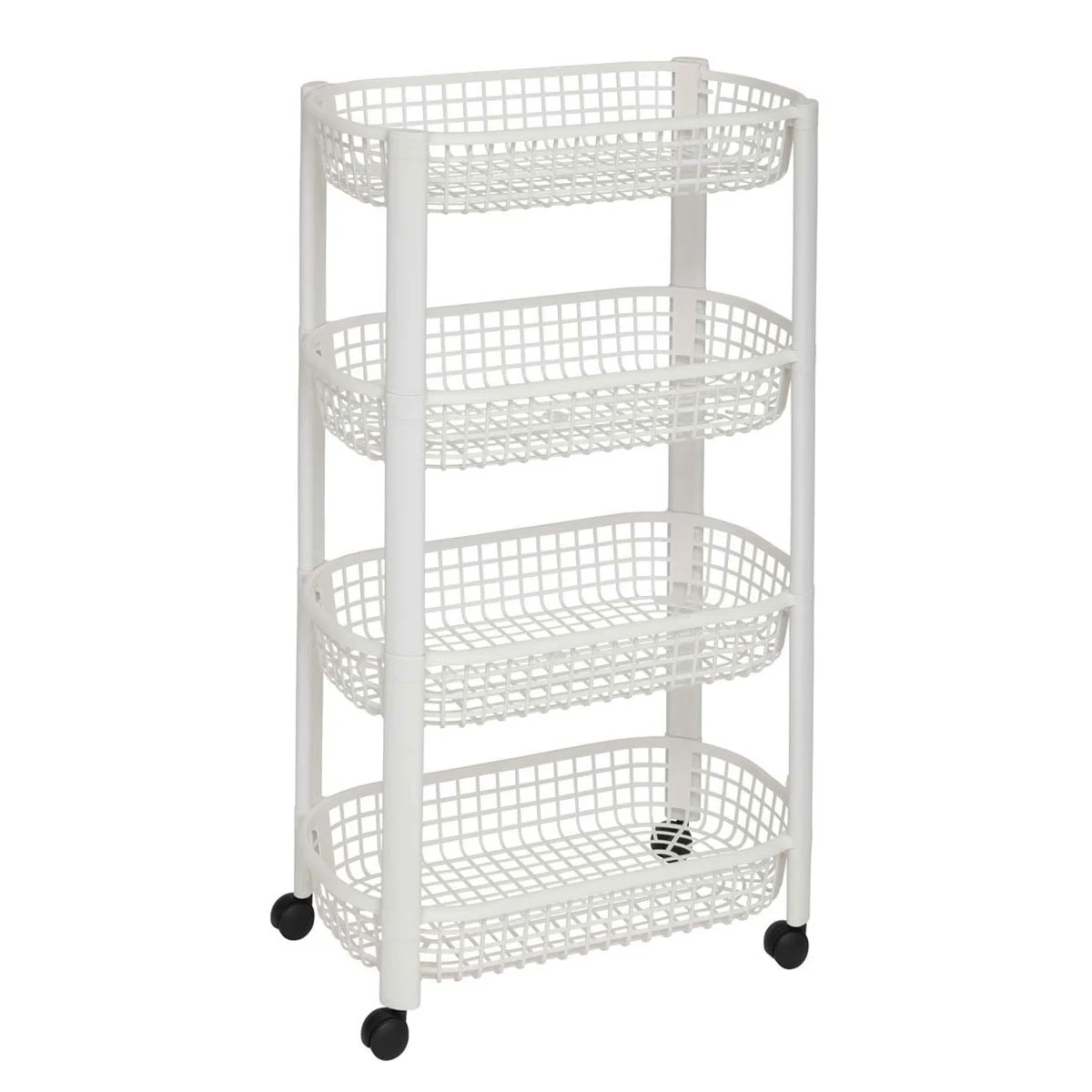 Φορητό ράφι με ρόδες, 4 καλάθια, χρώμα λευκό, ύψος 79 εκ.