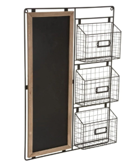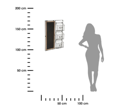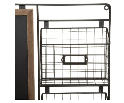 Οργανωτής τοίχου κατασκευασμένος από μέταλλο σε μαύρο χρώμα, αποτελώντας πρακτικό συμπλήρωμα για κάθε εσωτερικό χώρο. Διαθέτει τρία συρμάτινα ράφια, τα οποία μπορούν να φιλοξενήσουν πολλά αντικείμενα. Ο οργανωτής μπορεί να χρησιμοποιηθεί ως θήκη για περιοδικά, ράφι κουζίνας για μπαχαρικά ή πίνακας τοίχου. Η απλή μορφή και η ουδέτερη χρωματική παλέτα τον καθιστούν ιδανικό για συνδυασμό με διακοσμήσεις σε βιομηχανικό, μοντέρνο ή μινιμαλιστικό στυλ.