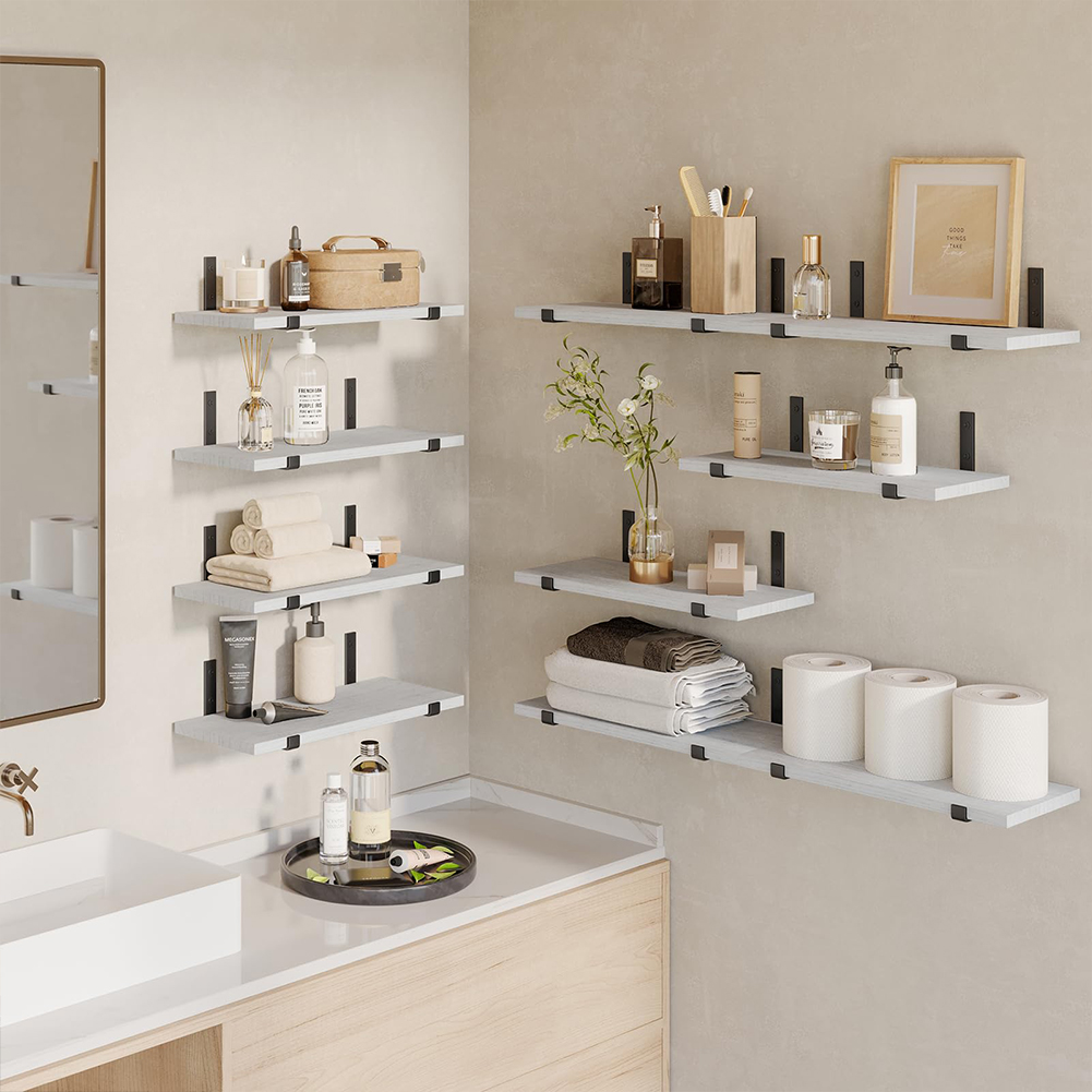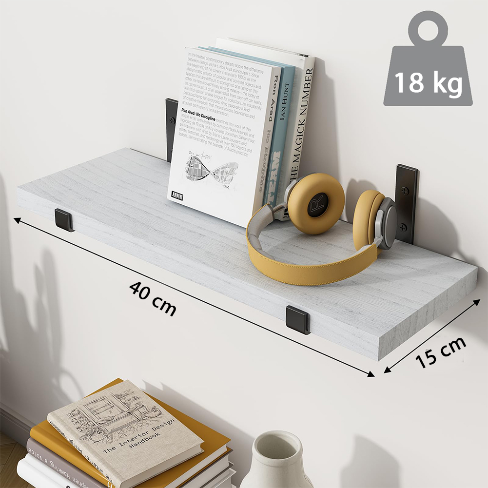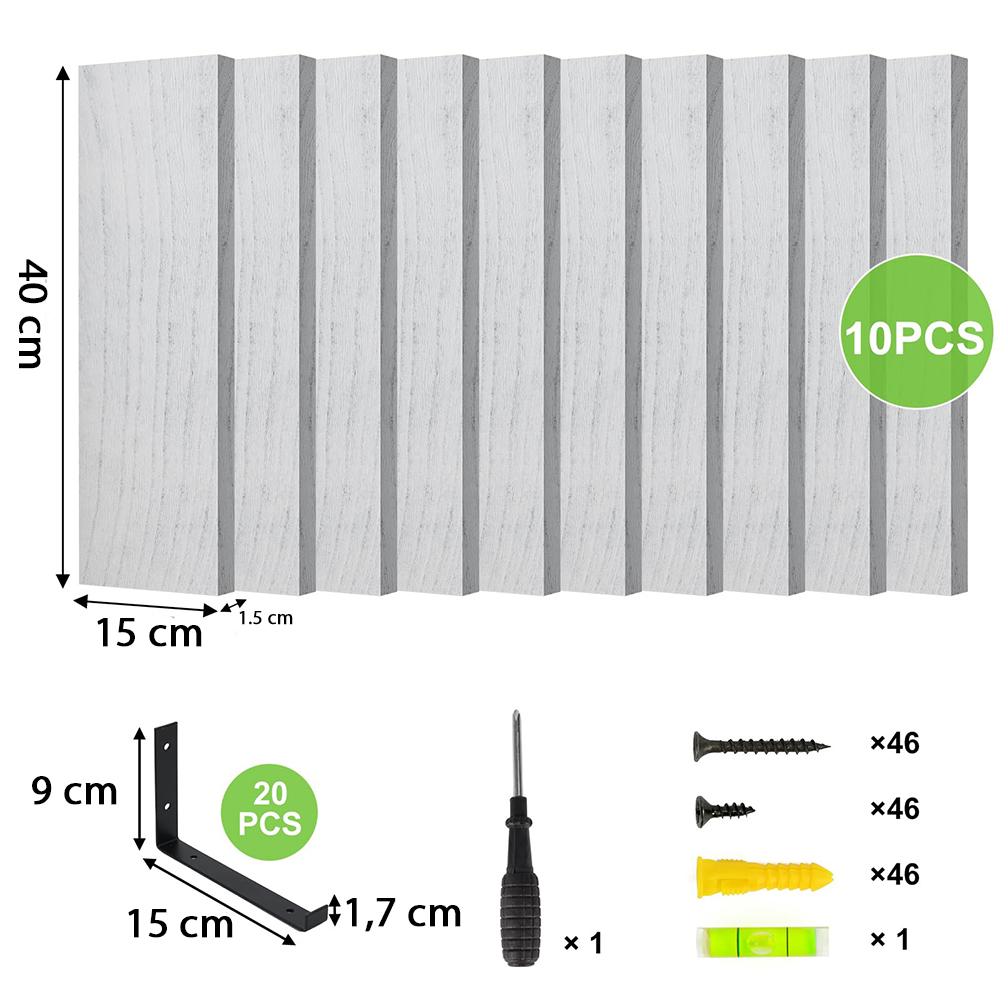 1 x Σετ 10 Γκρι Ξύλινα Ράφια Τοίχου Εξοικονόμησης Χώρου 40.5x15cm