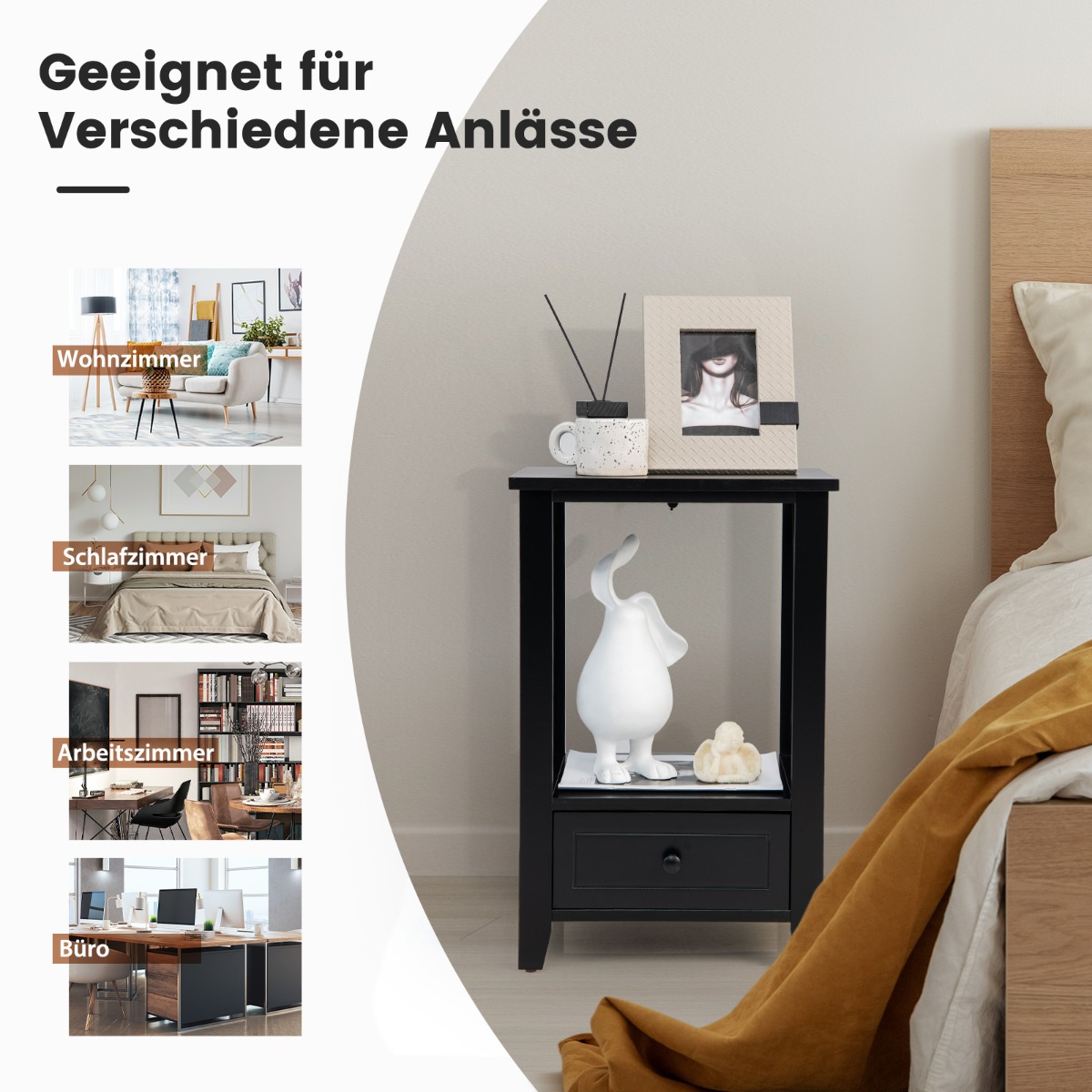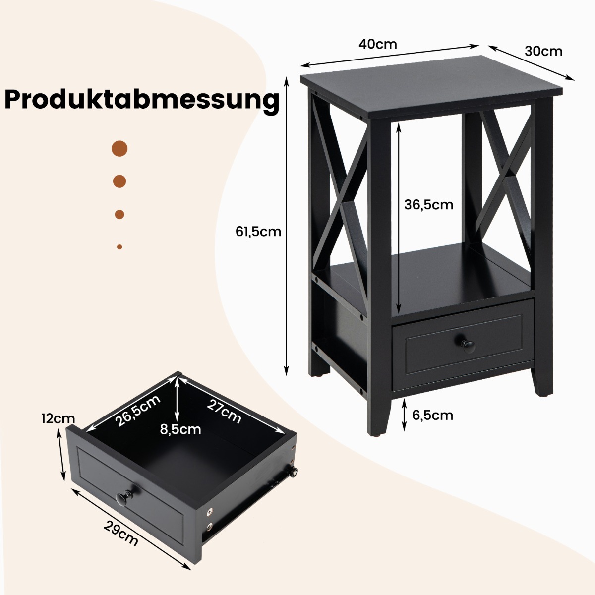 Costway κομοδίνο 2 επιπέδων με συρτάρι, βοηθητικό τραπέζι ξύλινο 40 x 30 x 61,5cm μαύρο HW66696BK