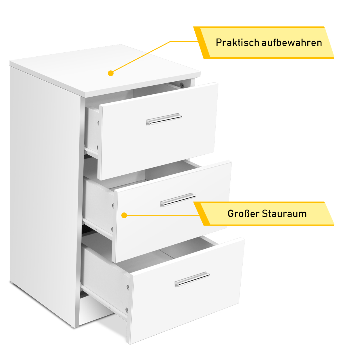 Costway Κομοδίνο με 3 Συρτάρια 38 x 67 x 35cm Λευκό/Μαύρο-Λευκό HW61149WH