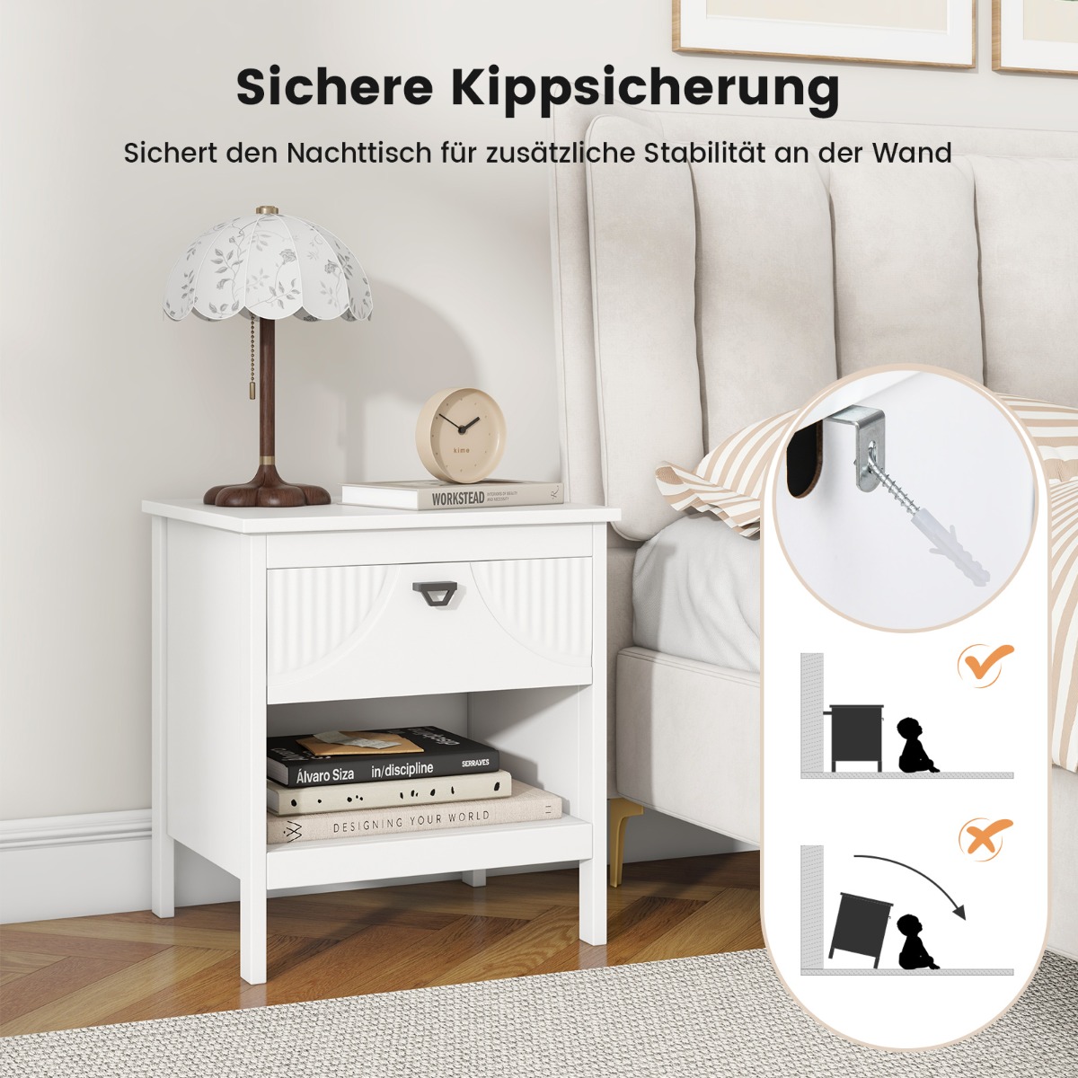 Costway Κομοδίνο με Μοντέρνο Σχεδιασμό και Πολυλειτουργική Αποθήκευση JV11403WH