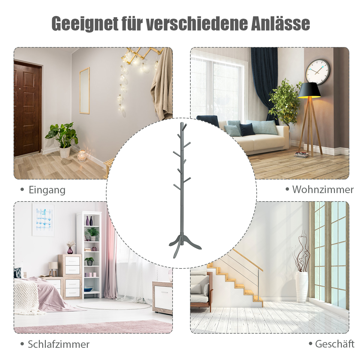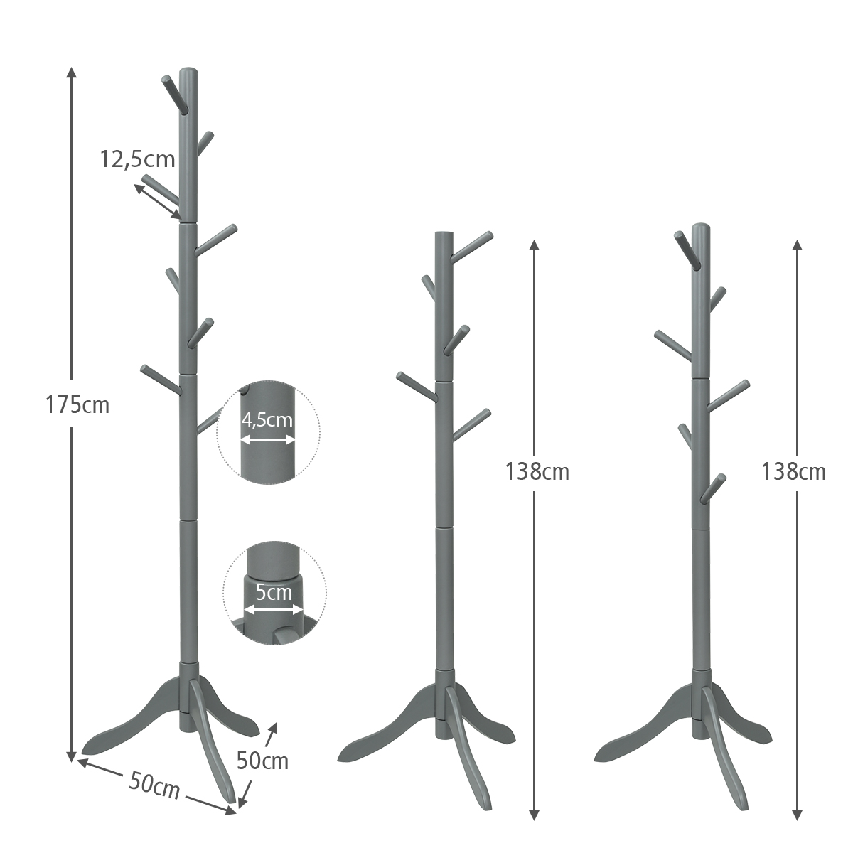 Costway Κρεμάστρα με 8 γάντζους, ξύλινη ρυθμιζόμενη σε ύψος 175 cm, γκρι. HW65612GR
