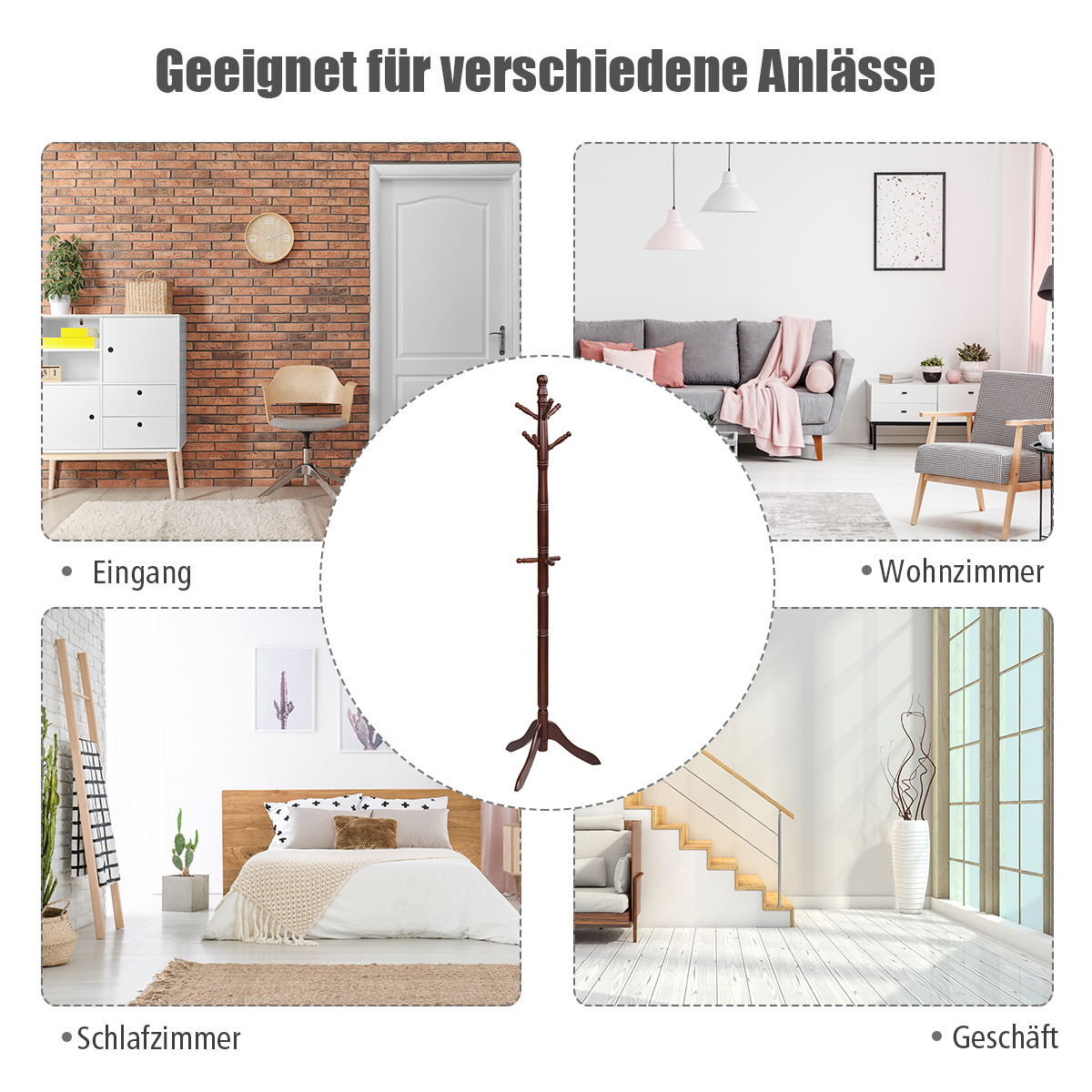 Costway Κρεμάστρα με 9 γάντζους, ελεύθερη κρεμάστρα ρούχων με ρυθμιζόμενο ύψος 175 cm, καφέ. HW65614BN