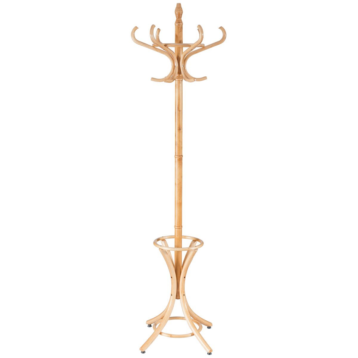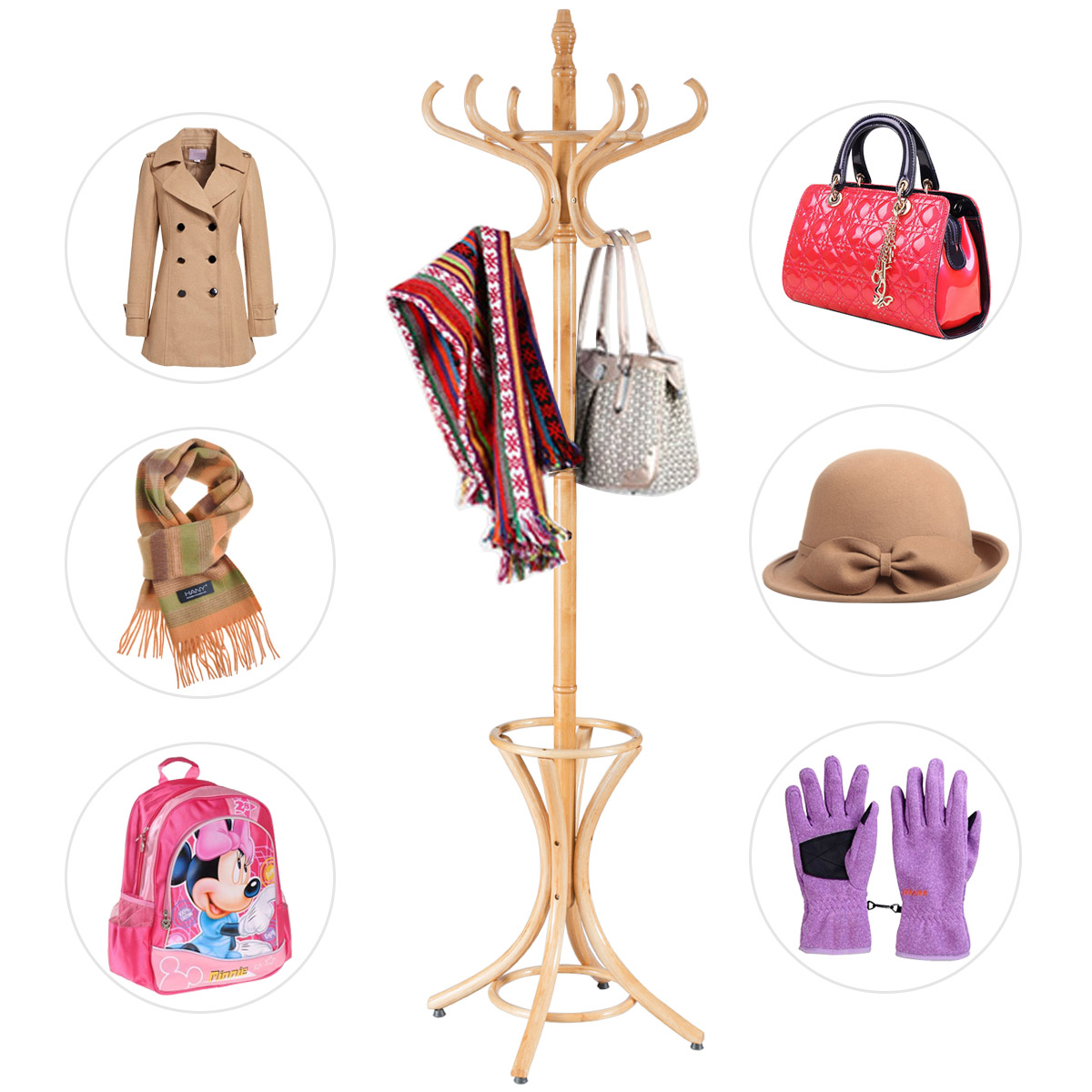Costway Ξύλινη Κρεμάστρα Ρούχων με Θέση για Ομπρέλες και 12 Γάντζους HW55588OA