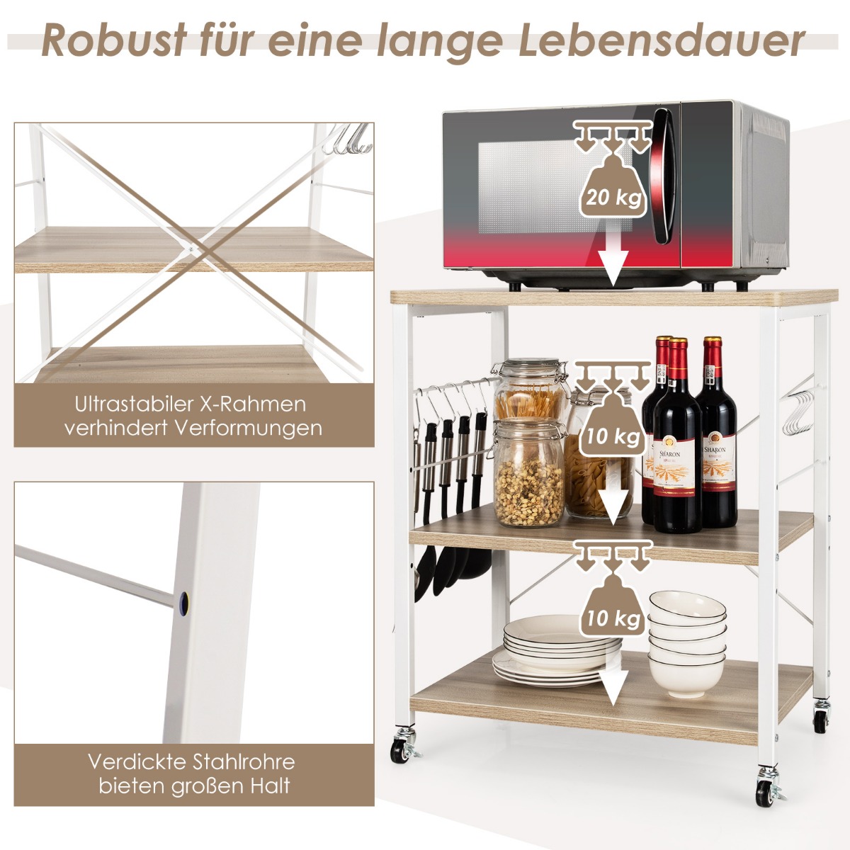 Αυτή είναι η λύση για το χάος στο δωμάτιο! Με τα τρία επίπεδά του, το καροτσάκι κουζίνας μας προσφέρει άφθονο χώρο για αντικείμενα όπως πιάτα ή μαγειρικά σκεύη. Μπορεί επίσης να χρησιμοποιηθεί για καφετιέρες ή εκτυπωτές. Ο σκελετός είναι κατασκευασμένος από υψηλής ποιότητας και παχύ χάλυβα, προσφέροντας αξιόπιστη χρήση. Επιπλέον, η λεία επιφάνεια είναι αδιάβροχη και καθαρίζεται εύκολα, κάτι που είναι ιδανικό για χρήση σε κουζίνες. Περιλαμβάνεται οδηγός βήμα προς βήμα στην παράδοση.