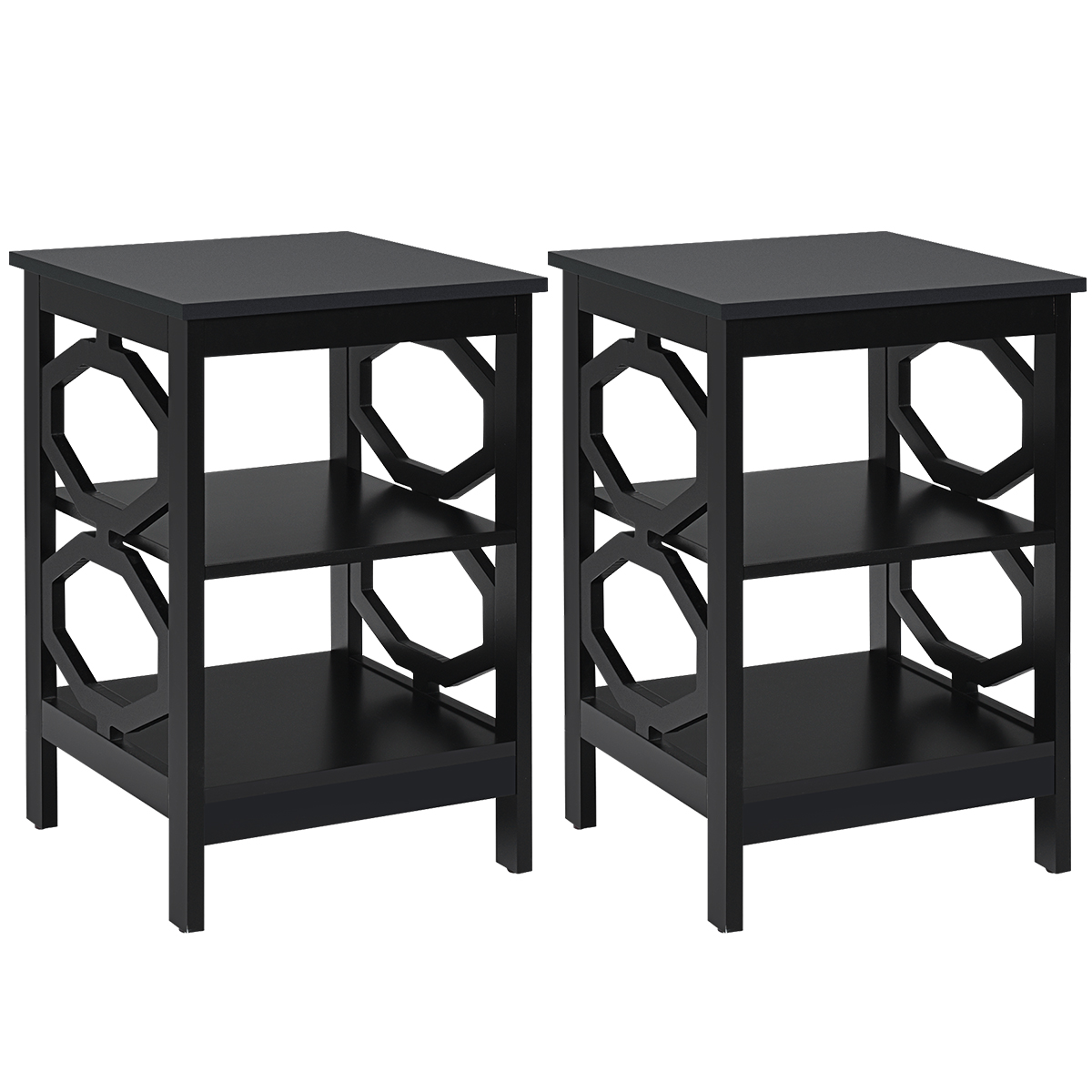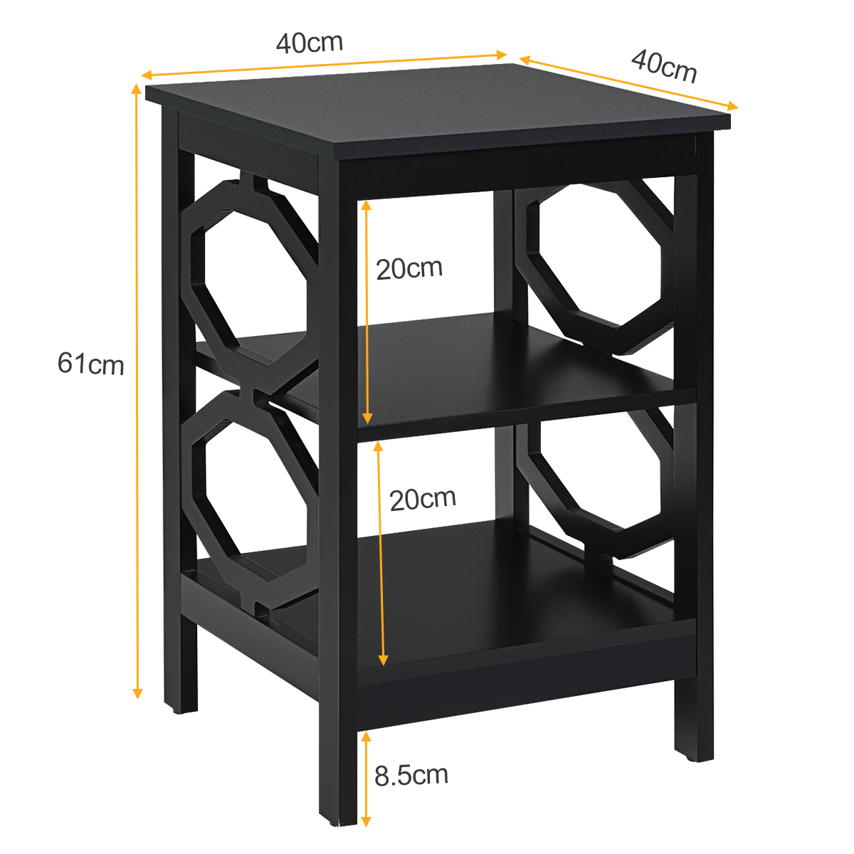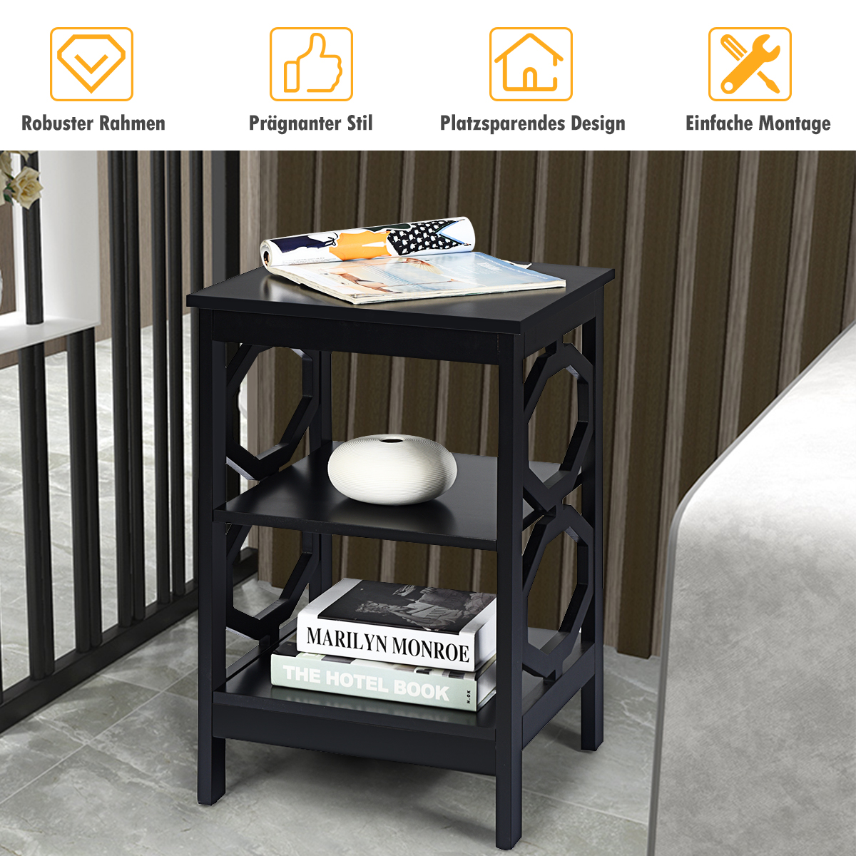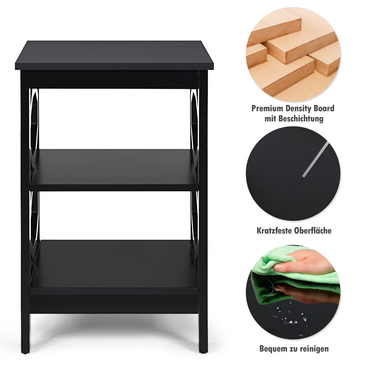 Costway Πολυλειτουργικό Κομοδίνο/Βοηθητικό Τραπέζι με 3 Ράφια και Ανθεκτική Κατασκευή από MDF για Σαλόνι ή Υπνοδωμάτιο HW65690BK-2