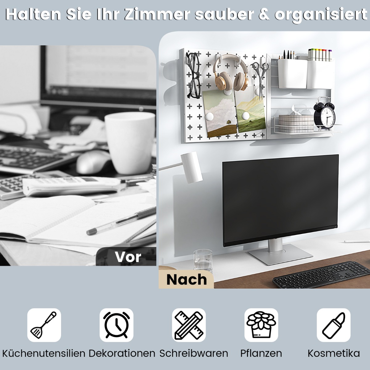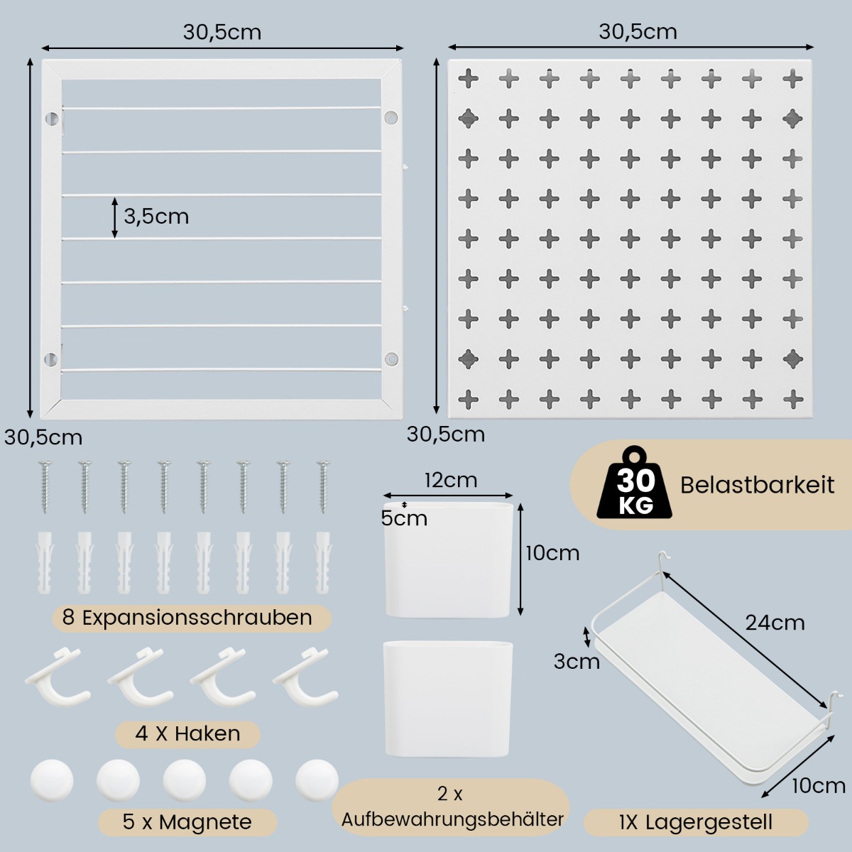 Costway Πολυλειτουργικός Πίνακας Οργάνωσης με Αξεσουάρ για Καθαρό και Τακτοποιημένο Χώρο 30,5 x 30,5 x 1,5 cm Λευκό JZ10181