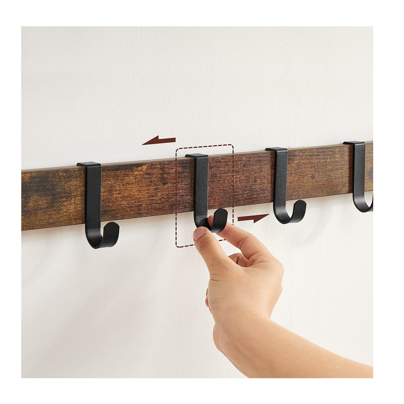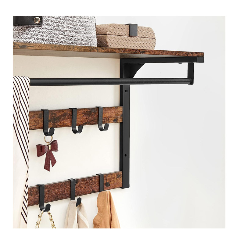 Η επιτοίχια κρεμάστρα, από την εταιρία VASAGLE, διαθέτει μεταλλικό σκελετό από ατσάλι, 10 αφαιρούμενους γάντζους, 1 ράβδο για φουλάρια και κασκόλ και 1 ξύλινο ράφι στο πάνω μέρος για καπέλα και άλλα αξεσουάρ.