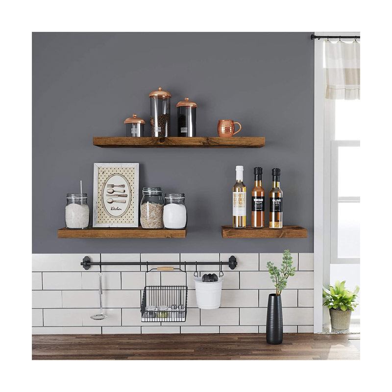 Τo επιτοίχιo ράφι, από την εταιρία VASAGLE, διαθέτει ανθεκτικό σκελετό από MDF ξύλο σε σκούρα καφέ απόχρωση απόχρωση. Τοποθετείται εύκολα στο τοίχο και μπορεί να φορτωθεί έως και 15 Kg (10 Kg αν η τοποθέτηση γίνει σε γυψοσανίδα). Χάρη στον απλό σχεδιασμό του ταιριάζει σε κάθε δωμάτιο.