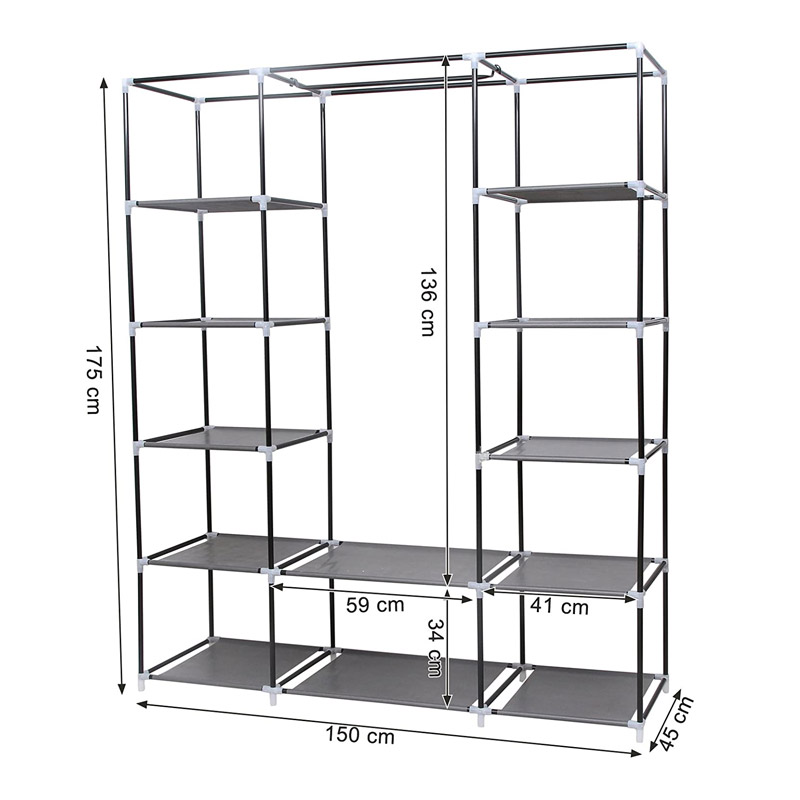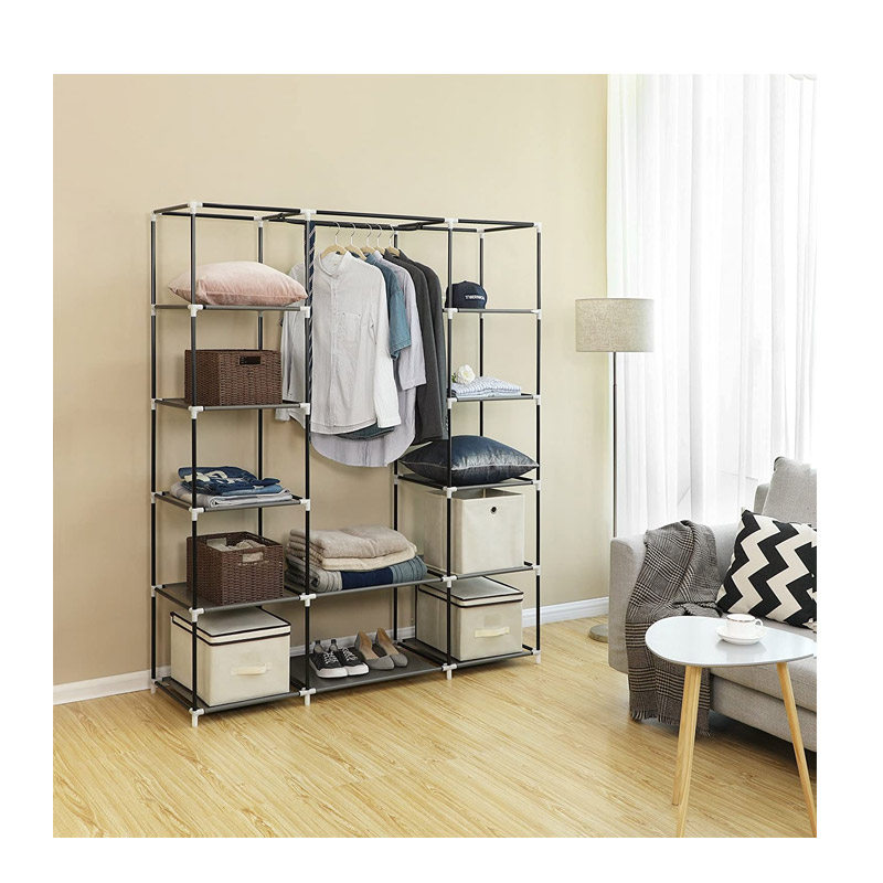 Η φορητή ντουλάπα, από την εταιρία Songmics, διαθέτει ανθεκτικό μεταλλικό σκελετό και δεν απαιτεί επιπλέον εργαλεία συναρμολόγησης. Θα σας βοηθήσει να έχετε εύκολη πρόσβαση στα ρούχα σας και να τα έχετε πάντα οργανωμένα και διπλωμένα. Διαθέτει στο εσωτερικό της 12 συνολικά ράφια για τα διπλωμένα ρούχα σας καθώς και 1 θέση για να κρεμάτε τα σακάκια ή πουκάμισα σας.