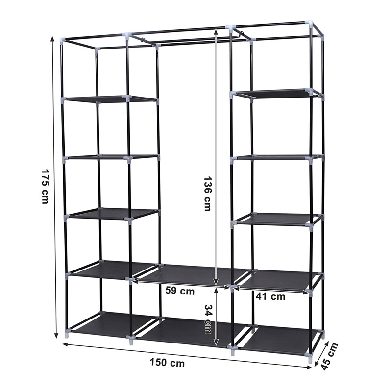 Η φορητή ντουλάπα, από την εταιρία Songmics, διαθέτει ανθεκτικό μεταλλικό σκελετό και δεν απαιτεί επιπλέον εργαλεία συναρμολόγησης. Θα σας βοηθήσει να έχετε εύκολη πρόσβαση στα ρούχα σας και να τα έχετε πάντα οργανωμένα και διπλωμένα. Διαθέτει στο εσωτερικό της 12 συνολικά ράφια για τα διπλωμένα ρούχα σας καθώς και 1 θέση για να κρεμάτε τα σακάκια ή πουκάμισα σας.