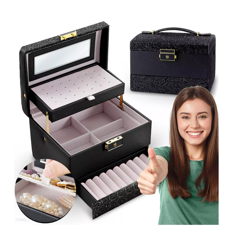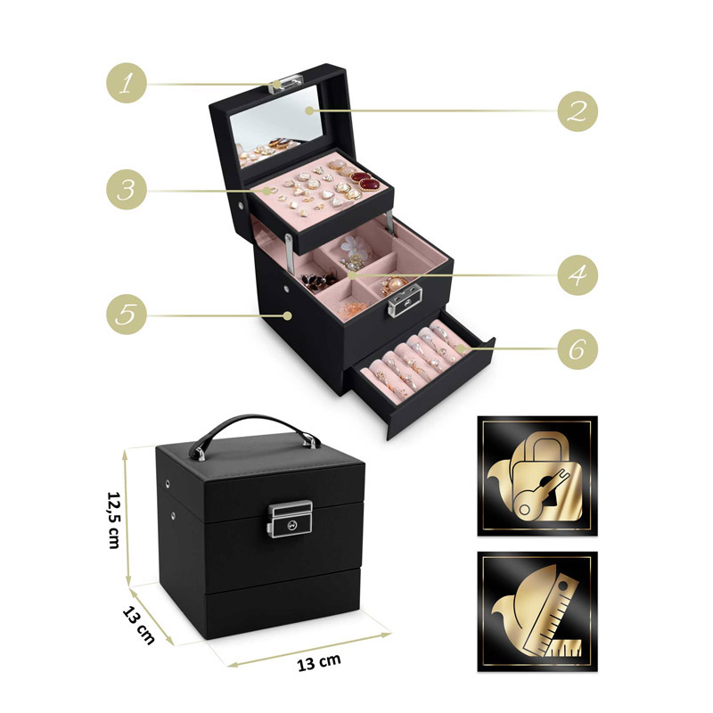 Κοσμηματοθήκη - Μπιζουτιέρα 17.5 x 13.7 x 12.5 cm Χρώματος Μαύρο Massido MS-705-Black
