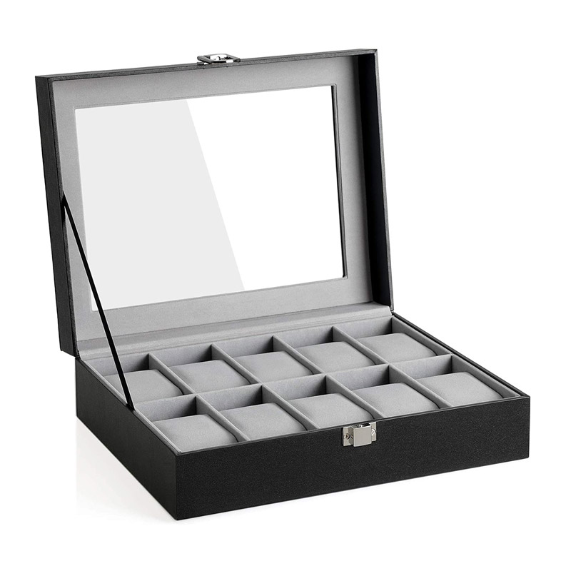 Η κοσμηματοθήκη - μπιζουτιέρα από την εταιρεία Songmics, διαθέτει 10 διαμερίσματα, με αφαιρούμενα ένθετα που μπορούν να τοποθετηθούν υπό γωνία ή να αφαιρεθούν εντελώς. Μπορείτε να αποθηκεύσετε έως 10 ρολόγια ή διάφορα άλλα κοσμήματα.