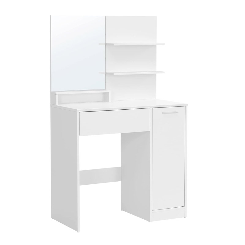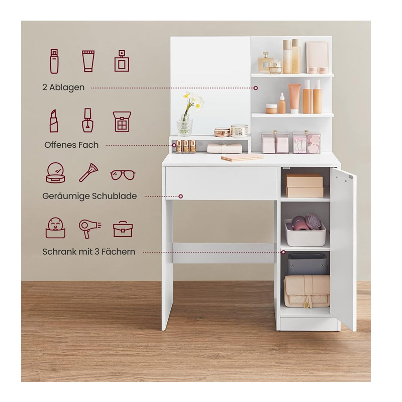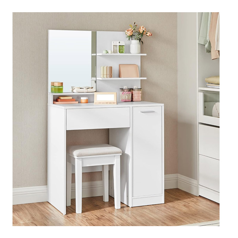 Το μπουντουάρ, από την εταιρία VASAGLE, είναι κατασκευασμένο από μοριοσανίδα, με λακαρισμένη επιφάνεια. Διαθέτει 2 ράφια, 1 συρτάρι, 1 ντουλάπι και 1 ορθογώνιο καθρέπτη.