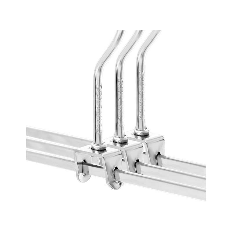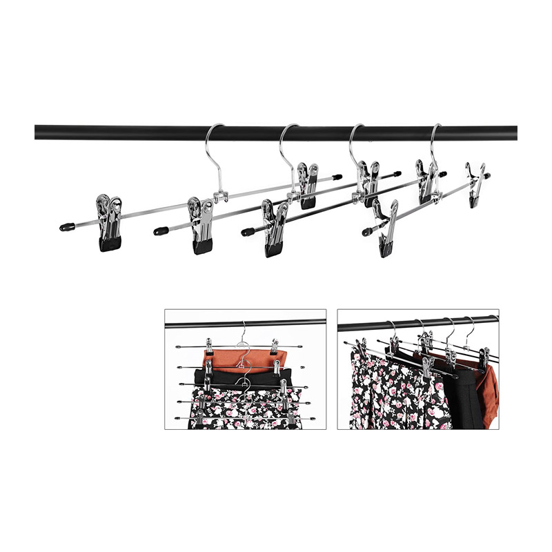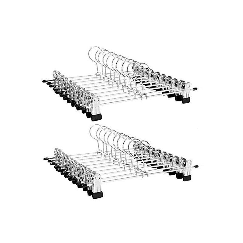 Το σετ, από την εταιρία Songmics, αποτελείται από 20 κρεμάστρες κατασκευασμένες από μέταλλο, υψηλής ποιότητας, με εξαιρετική ανθεκτικότητα και ελαστικότητα. Διαθέτουν κλιπς, με επίστρωση από PVC στο άνοιγμα, τα οποία είναι αντιολισθητικά και δεν αφήνουν σημάδια στα ρούχα. Τα άγκιστρα τους περιστρέφονται κατά 360°, για μεγαλύτερη ευκολία. Καταλαμβάνουν λίγο αποθηκευτικό χώρο και είναι κατάλληλες για φούστες, παντελόνια ακόμα και κάλτσες.