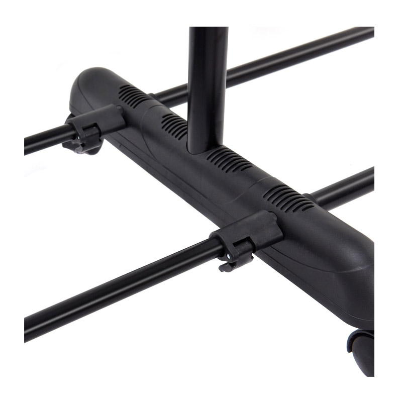Η μεταλλική κρεμάστρα, από την εταιρία Costway, διαθέτει σωληνοειδή σκελετό από ατσάλι με ηλεκτροστατική βαφή πούδρας, ο οποίος είναι ελαφρύς αλλά στιβαρός, καθιστώντας την κρεμάστρα εύκολη στη μετακίνηση και αρκετά ανθεκτική. Οι 6 τροχοί (2 με φρένα) και οι σύνδεσμοι είναι κατασκευασμένοι από ανθεκτικό πλαστικό, χαρακτηριστικό που σας επιτρέπει να τη χρησιμοποιείτε μπορούν τόσο σε εσωτερικούς όσο και σε εξωτερικούς χώρους.