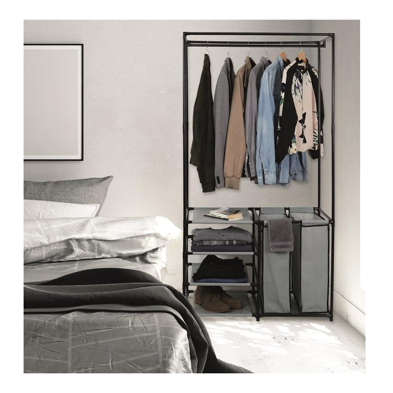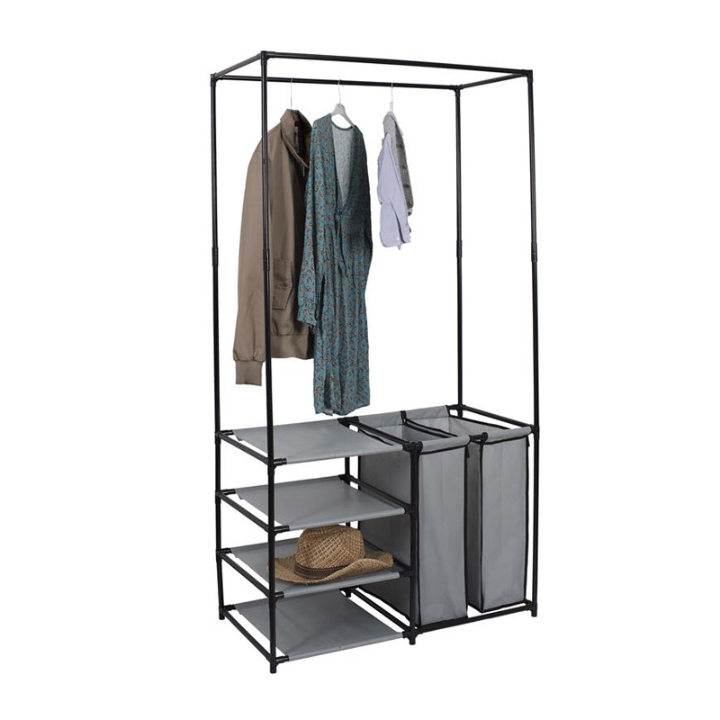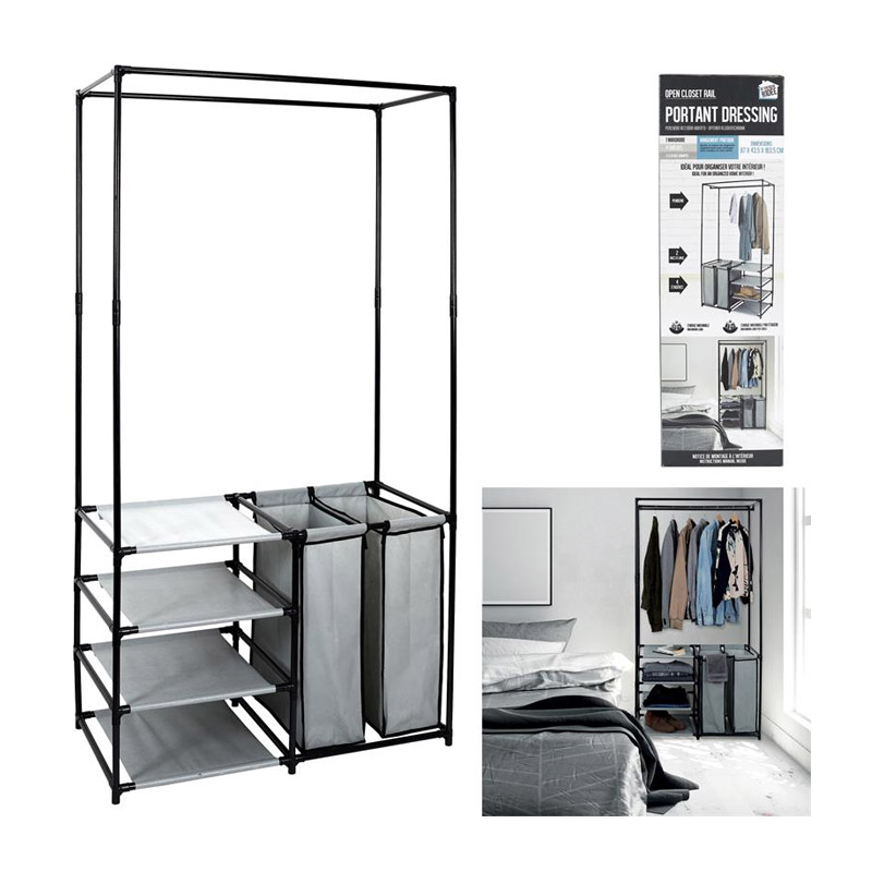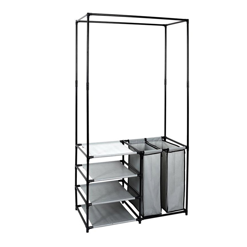 Μεταλλική Κρεμάστρα Δαπέδου με 4 Υφασμάτινα Ράφια και 2 Καλάθια Απλύτων 87 x 43.5 x 163.5 cm JE CHERCHE UNE IDEE RG6380
