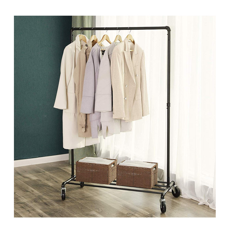 Η κρεμάστρα ρούχων, από την εταιρία Songmics, διαθέτει μεταλλικούς σωλήνες υψηλής ποιότητας, εξασφαλίζοντας ανώτερη αντοχή και σταθερότητα, με μέγιστο βάρος τα 90 Kg. Είναι ιδανική για παλτό, φορέματα, πουκάμισα και διάφορα ρούχα τα οποία θέλετε να έχετε πάντα τακτοποιημένα. Είναι εξοπλισμένη με επιπρόσθετο ράφι στο κάτω μέρος για παπούτσια και 4 πλαστικές και περιστρεφόμενες ρόδες 360° με φρένα ασφάλισης για εύκολη μετακίνηση.