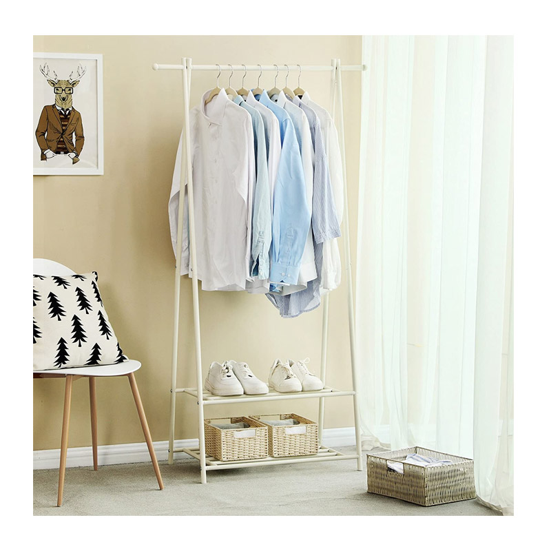 Η κρεμάστρα ρούχων, από την εταιρία Songmics, διαθέτει μεταλλικούς σωλήνες υψηλής ποιότητας, εξασφαλίζοντας ανώτερη αντοχή και σταθερότητα. Είναι ιδανική για παλτό, φορέματα, πουκάμισα και διάφορα ρούχα τα οποία θέλετε να έχετε πάντα τακτοποιημένα. Στο κάτω μέρος, έχει 2 ράφια για παπούτσια και κουτιά αποθήκευσης.